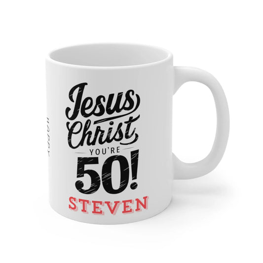 50th Birthday Mug Personalised Jesus Christ You're 50