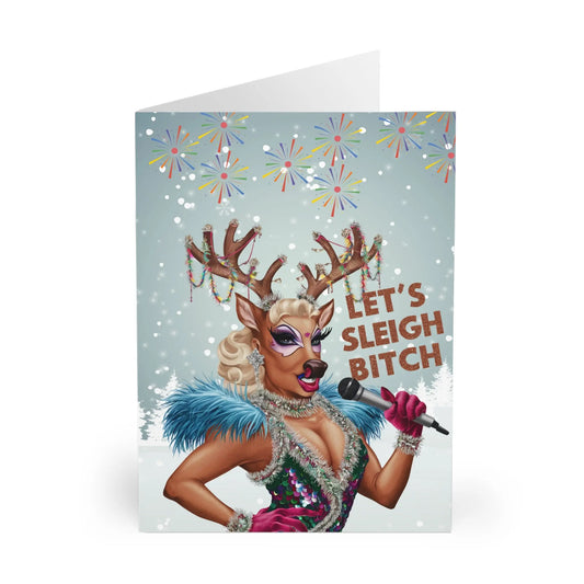Gay Christmas Card Drag Reindeer Sleigh Bitch