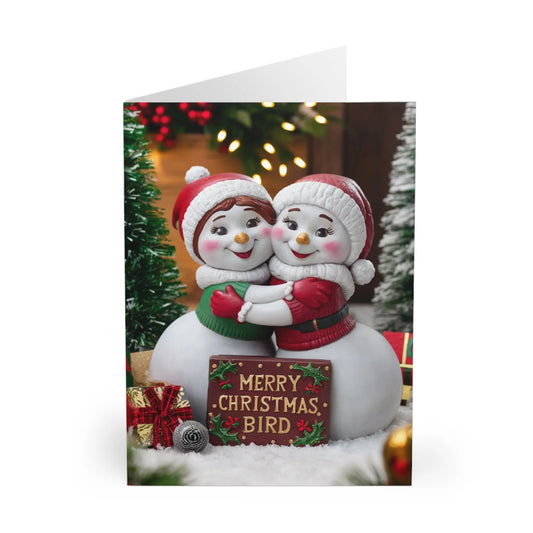 Gay Christmas Card Merry Christmas Bird Snowwomen Cuddling