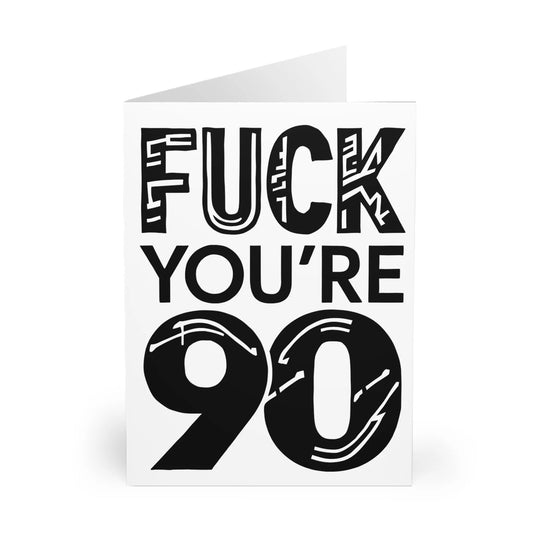 90th Birthday Card Fuck You're 90 Bold Black Text