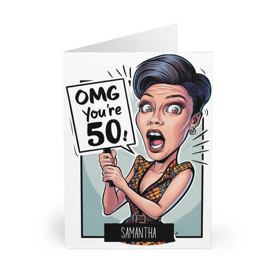 Funny Birthday Card Personalised OMG You're 50 Shocked Woman