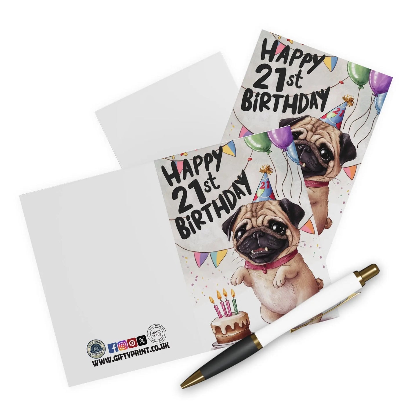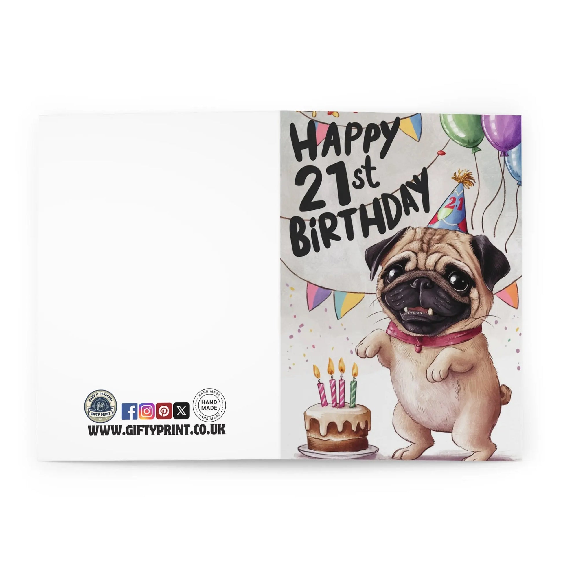 Product Details For 21st Birthday Card Birthday Pug Dog & Cake