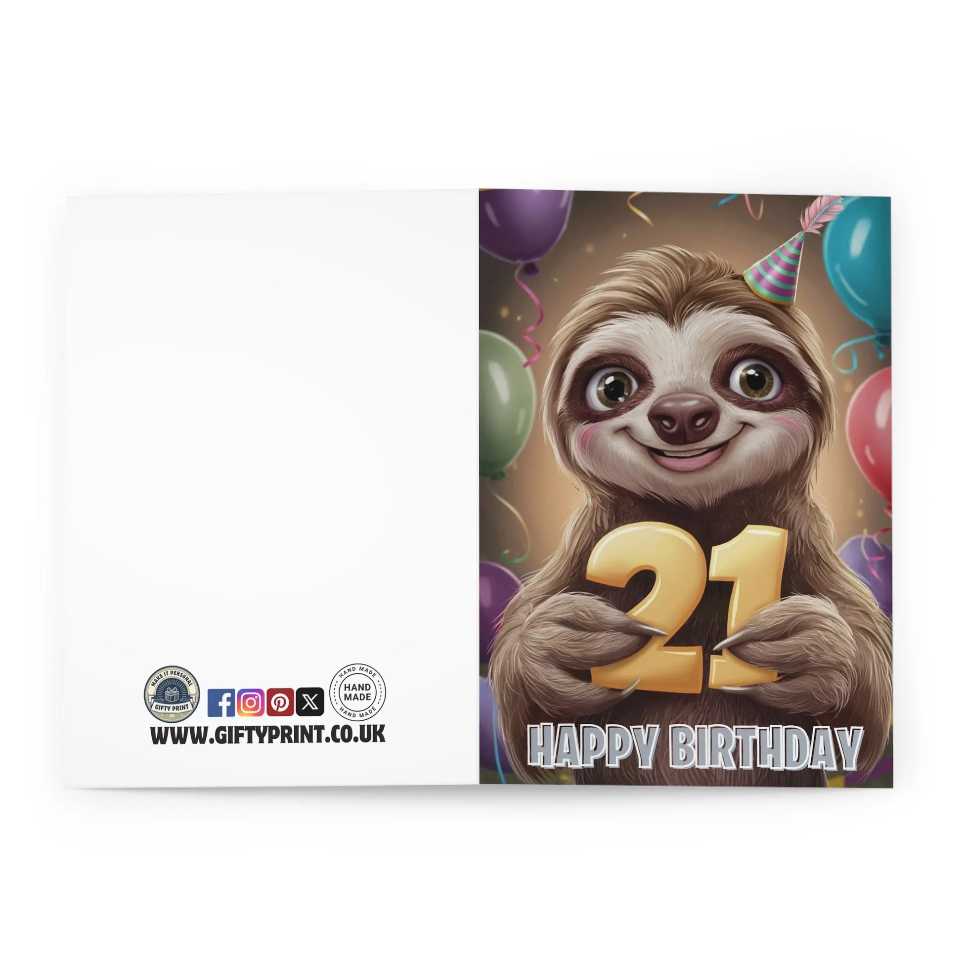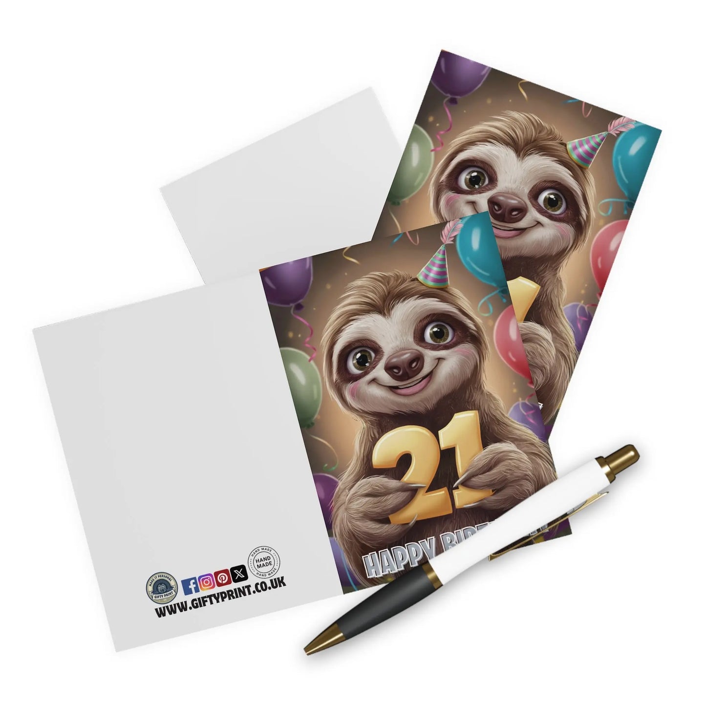 21st Birthday Card, Get your party on with this cute and quirky Happy 21st Birthday Card featuring a lovable sloth! Perfect for celebrating all the fun of turning 21. Make their day extra special with this playful and unique card. (But seriously, no pressure to adult just yet.)