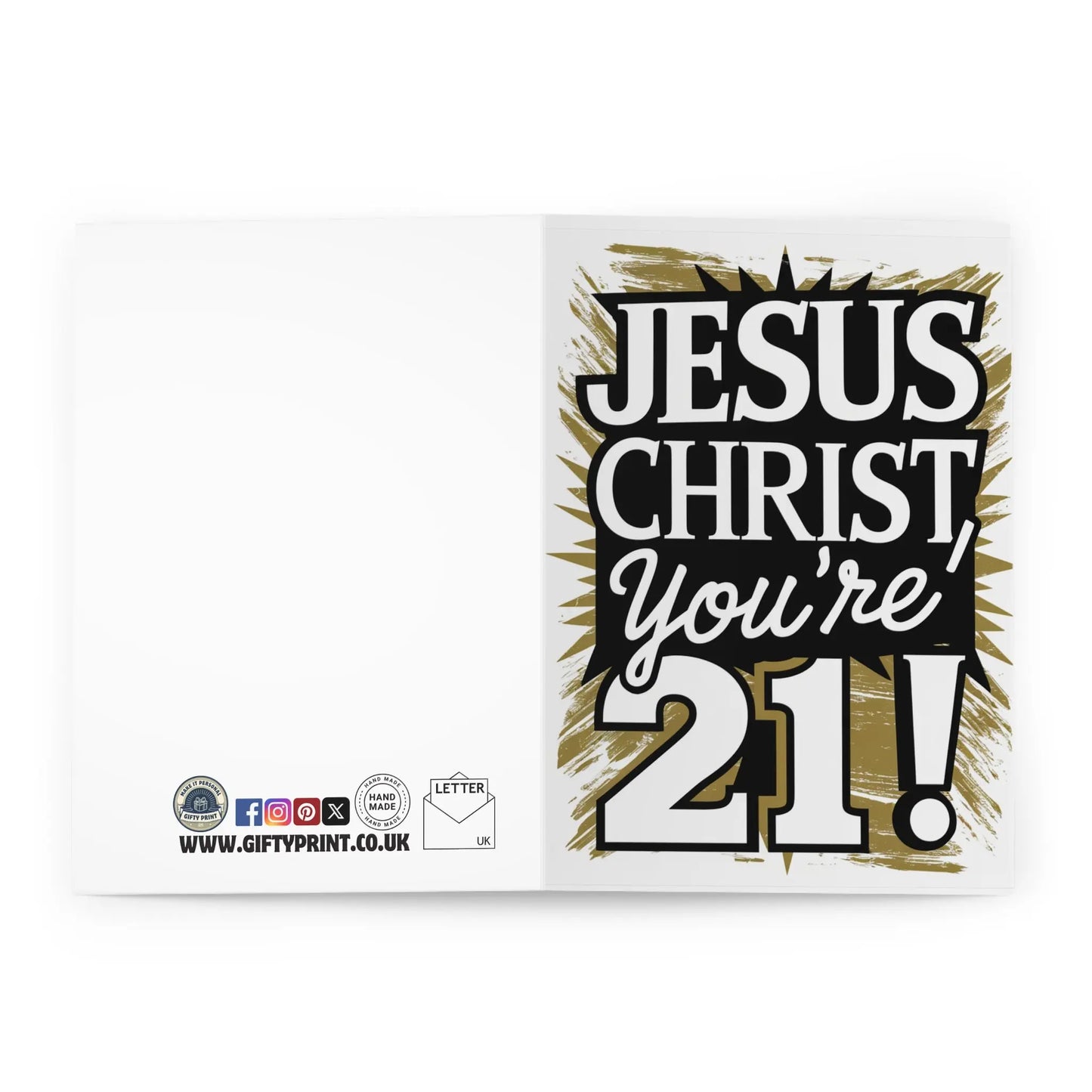 Product Details For 21st Birthday Card Jesus Christ You're 21! Gold