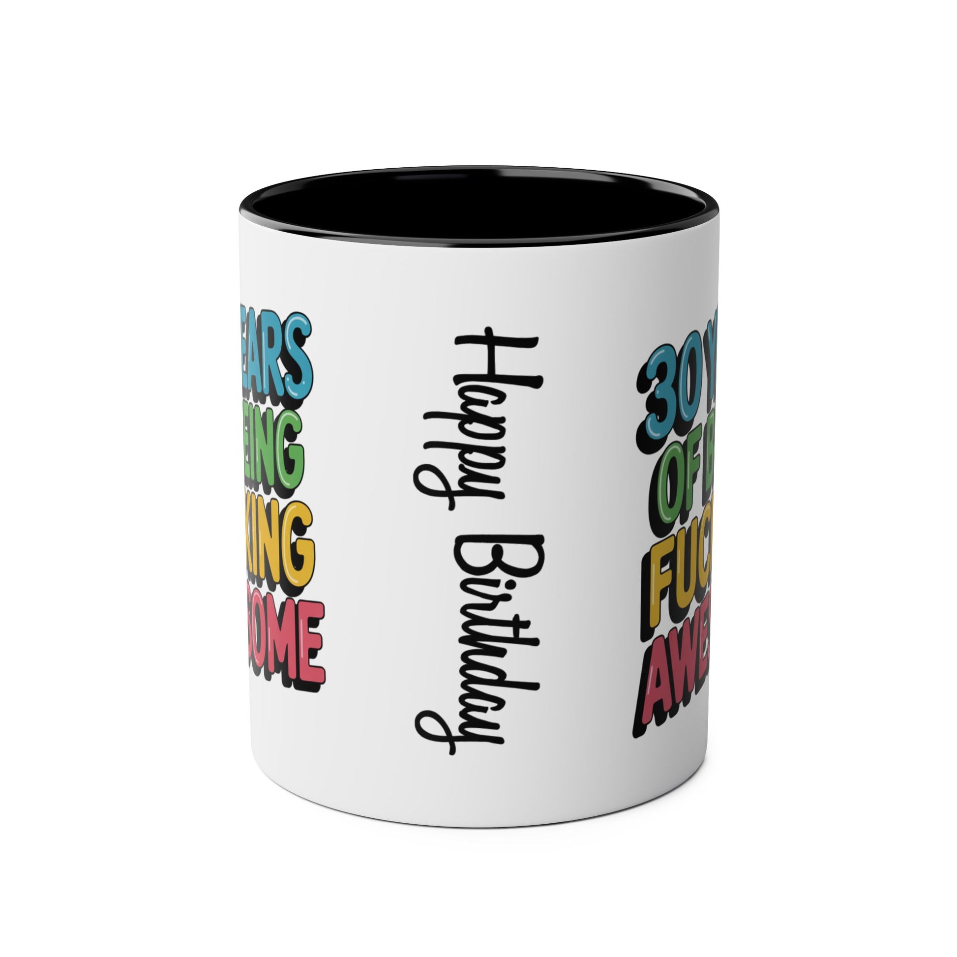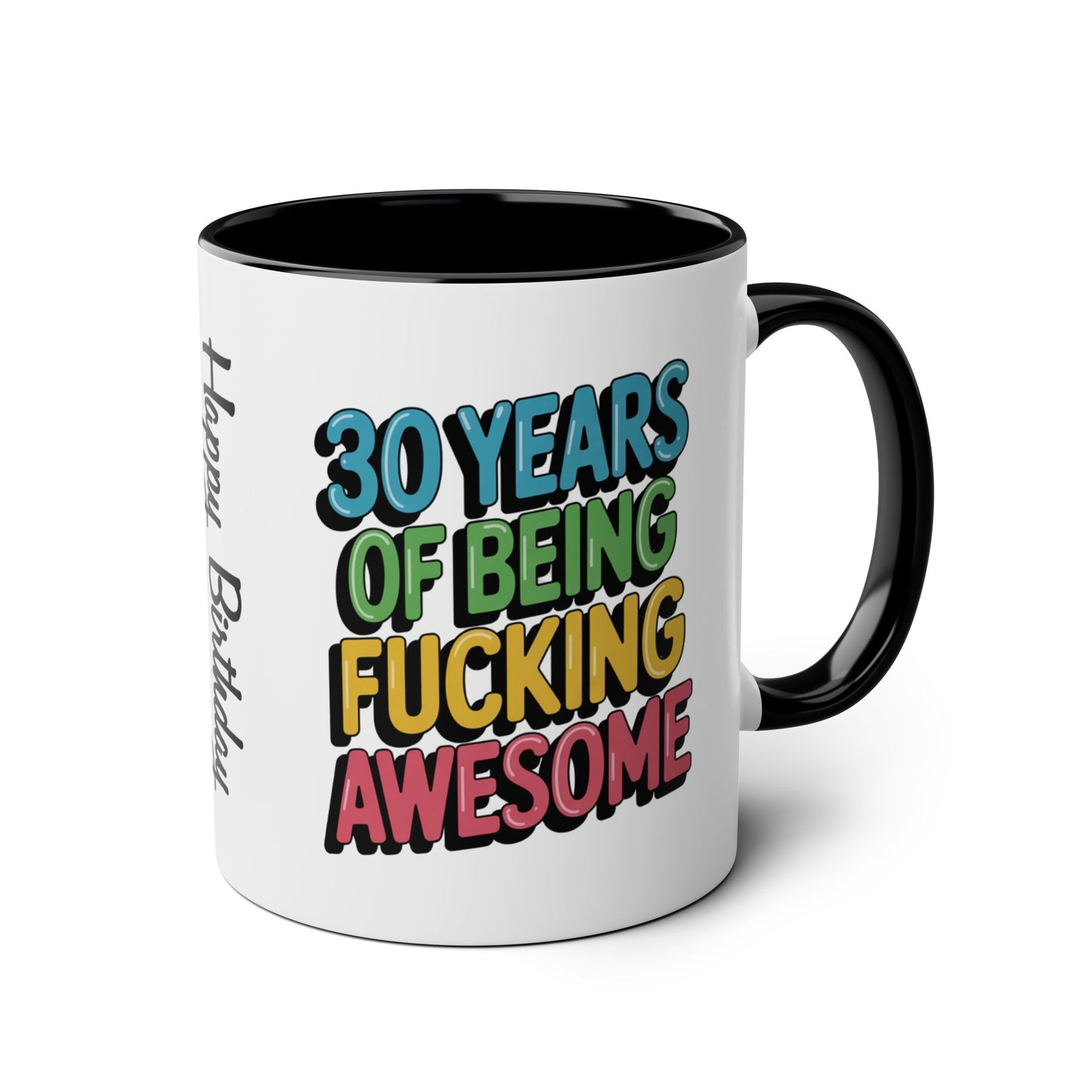 30th Birthday Mug, Celebrate your 30th year of being fucking awesome with this mug! Made of high-quality ceramic, this 11 oz mug is microwave and dishwasher safe, making it the perfect gift for anyone who loves a good cup of coffee or tea. Emblazoned with the words "30th Birthday Mug 30 Years Of Being Fucking Awesome," this mug will make you feel truly badass every time you use it.