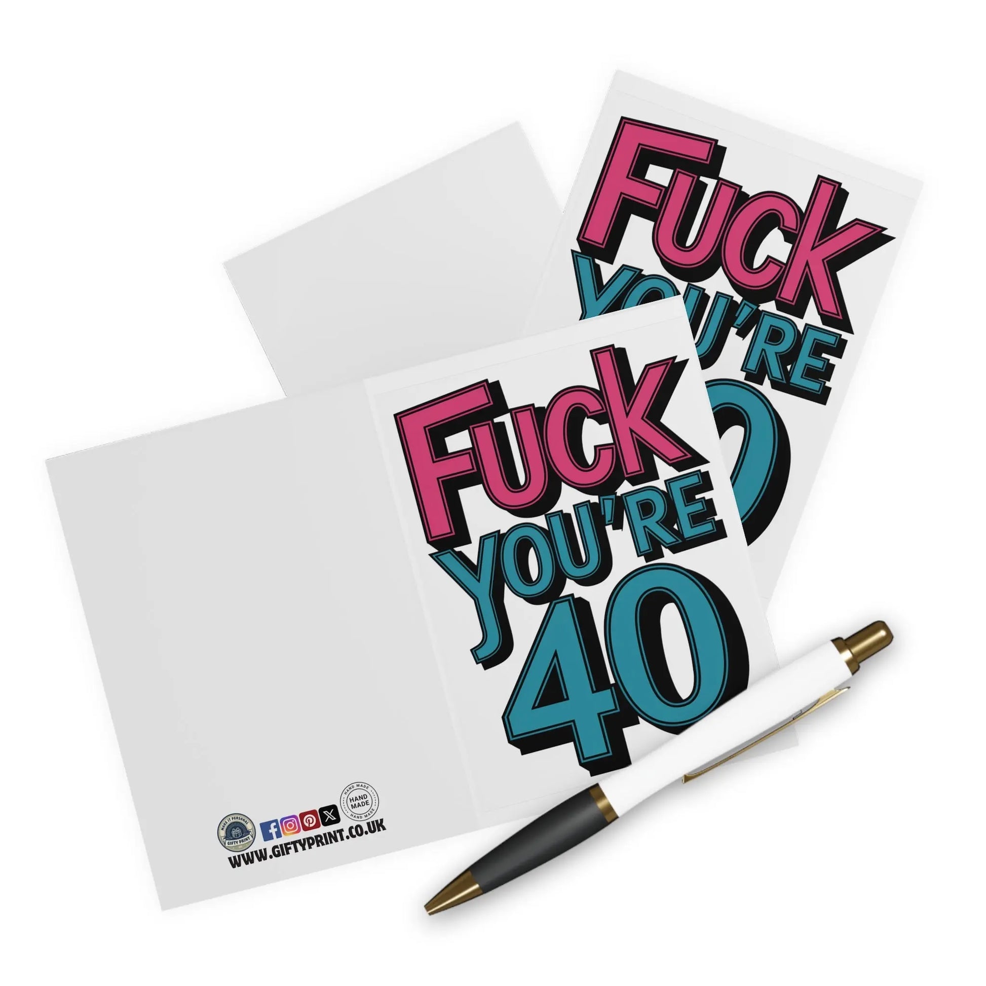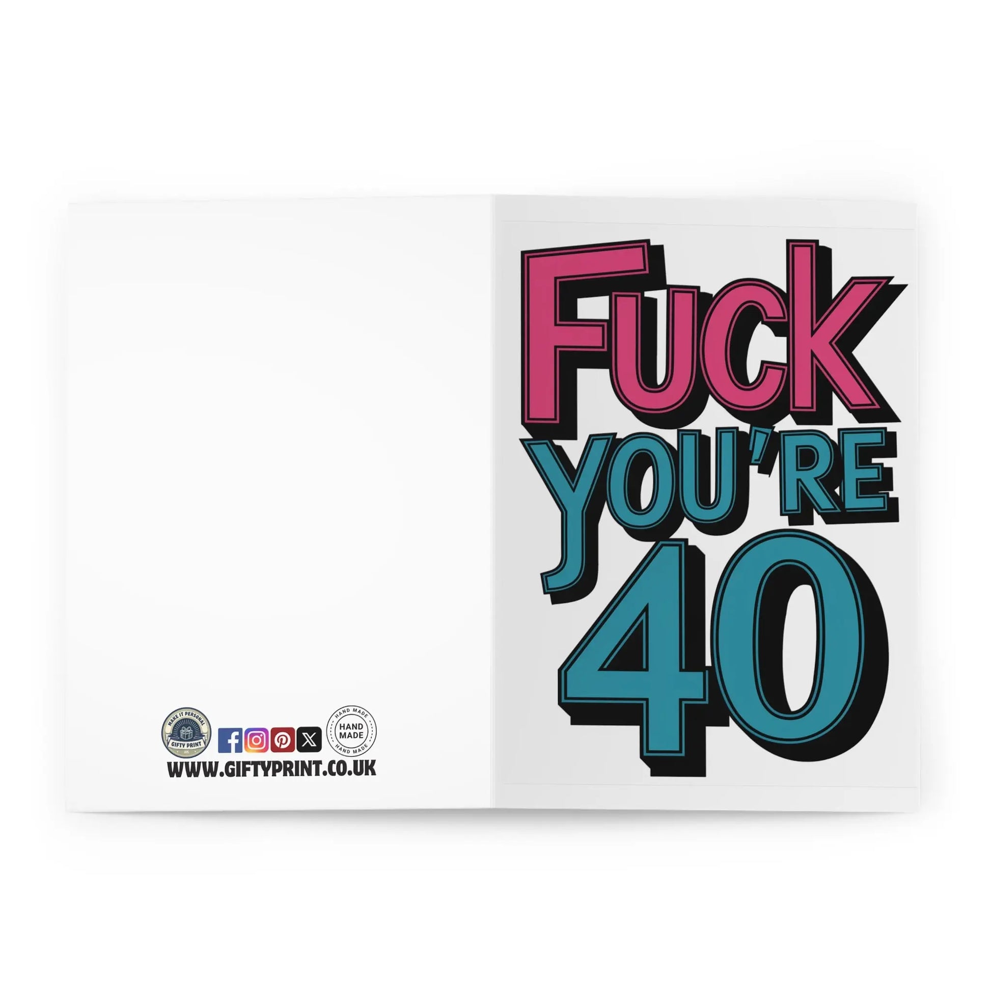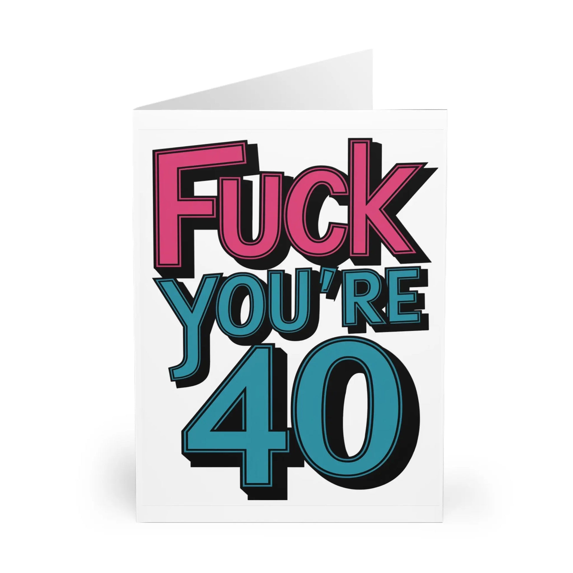 40th Birthday Card, Celebrate hitting the big 4-0 with this bold and sassy t-shirt, featuring a cheeky "Fuck You're 40" message. Perfect for those who don't take themselves too seriously and want to add a touch of humour to their milestone birthday. Don't be afraid to show your age and have a little fun with it!