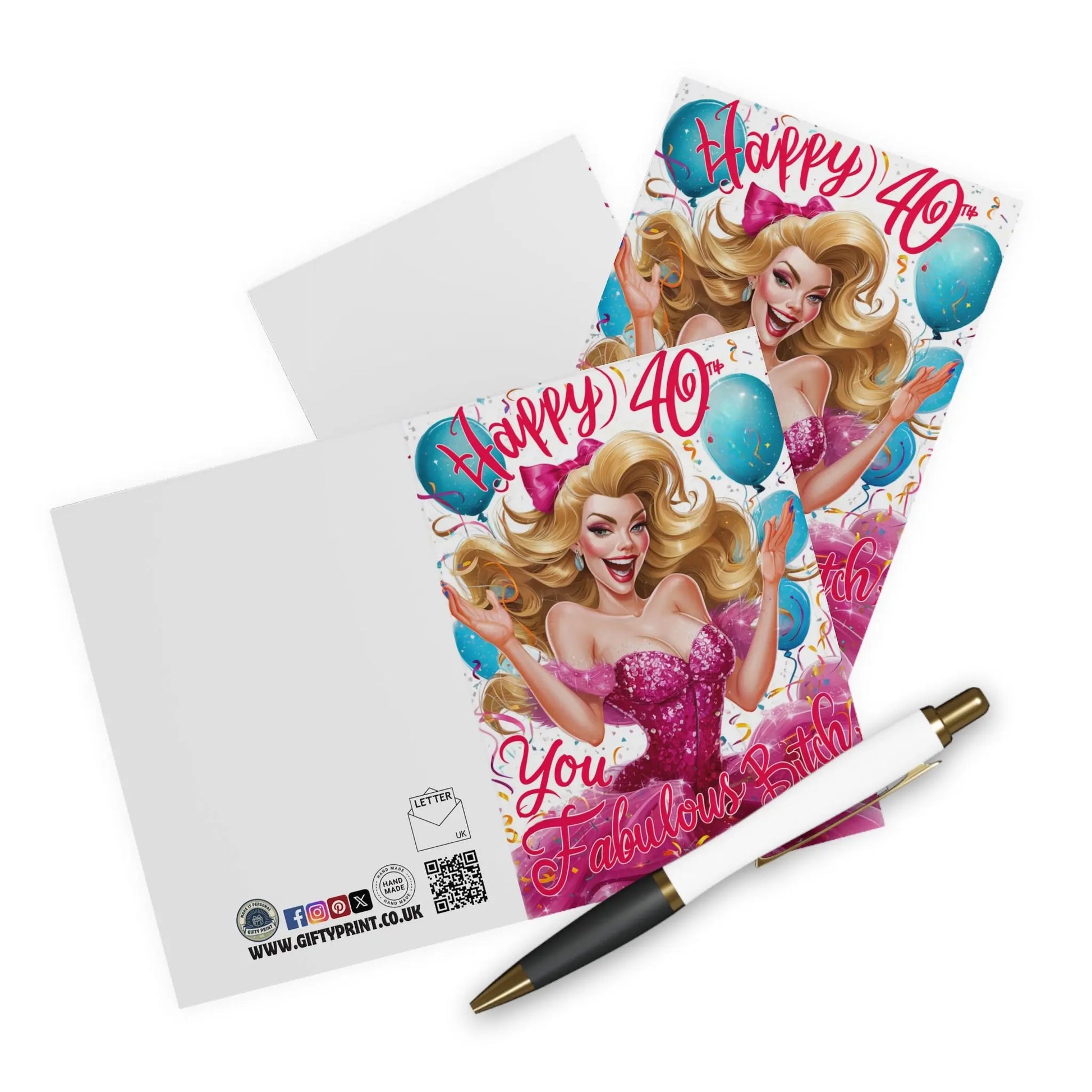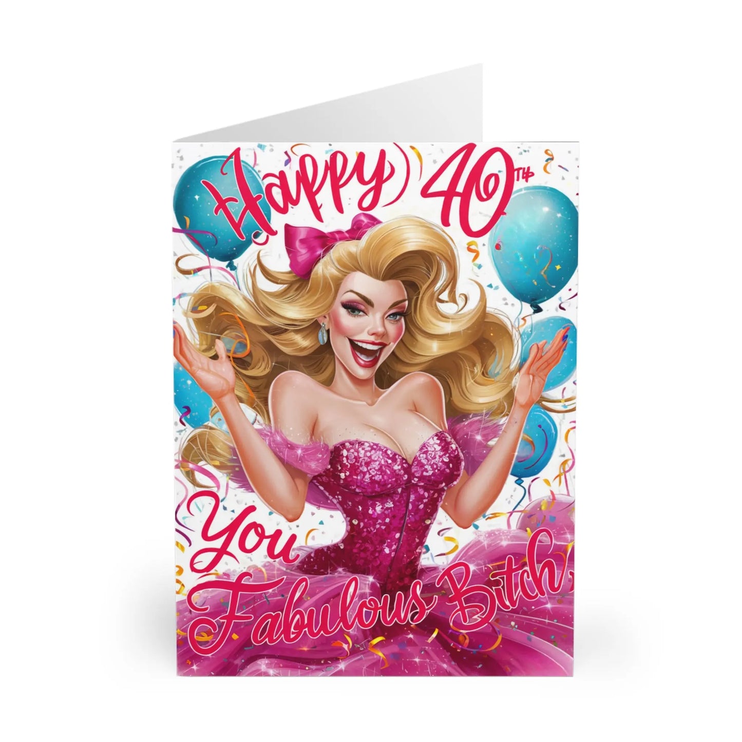 40th Birthday Card, Celebrate in style with our 40th Birthday Card! Featuring bold letters and a sassy message, this card is perfect for the fabulous bitch in your life turning 40. Show them some love and laughter on their big day.