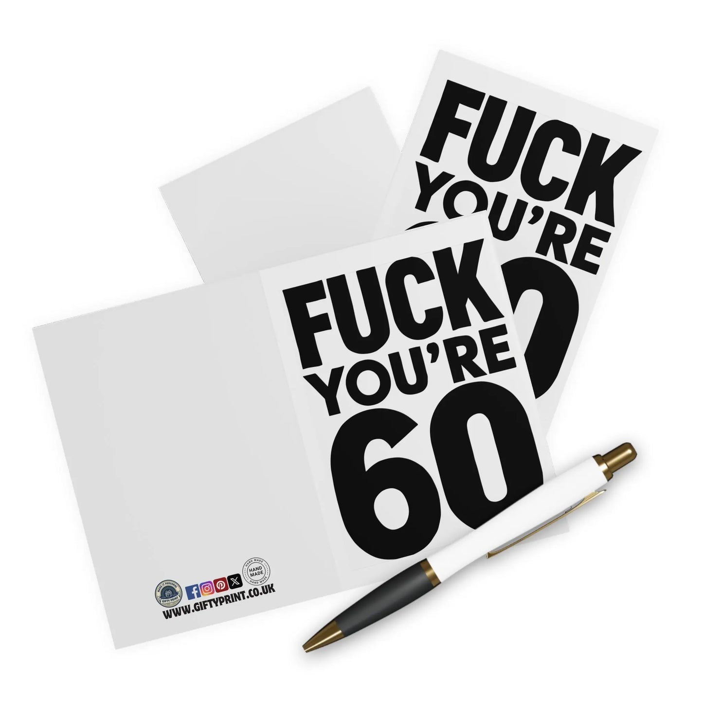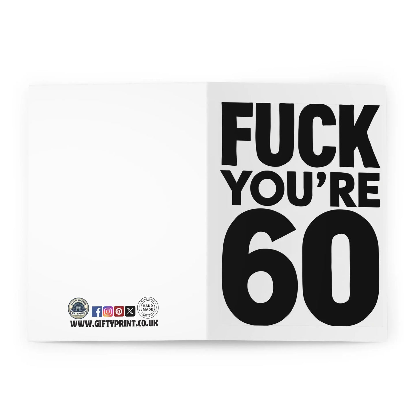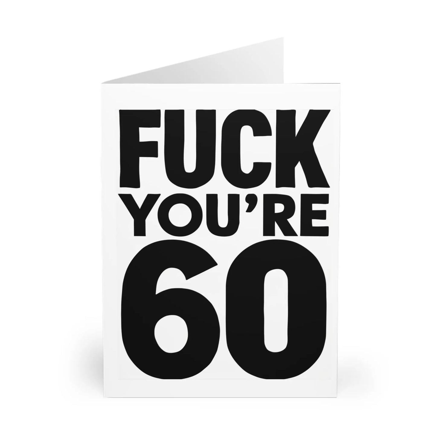 60th Birthday Card, Celebrate their 60th with a hilarious twist! This bold and sassy birthday card says it all - "Fuck You're 60" - in a playful and cheeky way. Sure to bring a smile and laugh, it's the perfect way to show them you still see them as the fun and vibrant person they are.