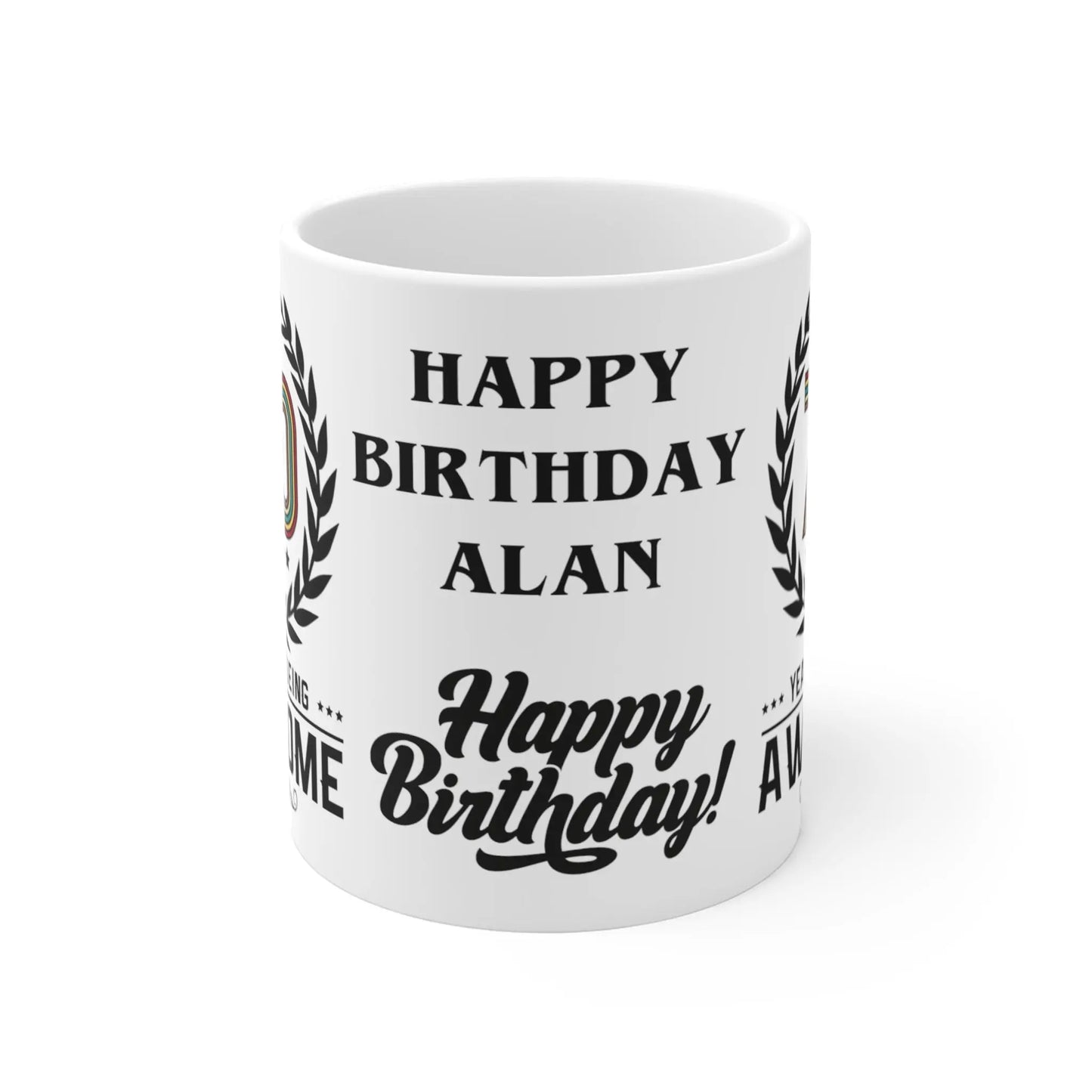 70th Birthday Mug, Celebrate someone special's 70th birthday with our Personalised 70th Birthday Mug! With the phrase "70 Years Of Being Awesome" printed on the front, this mug is a perfect way to show your love and admiration. Plus, add a personal touch with a name on the back. Cheers to 70!