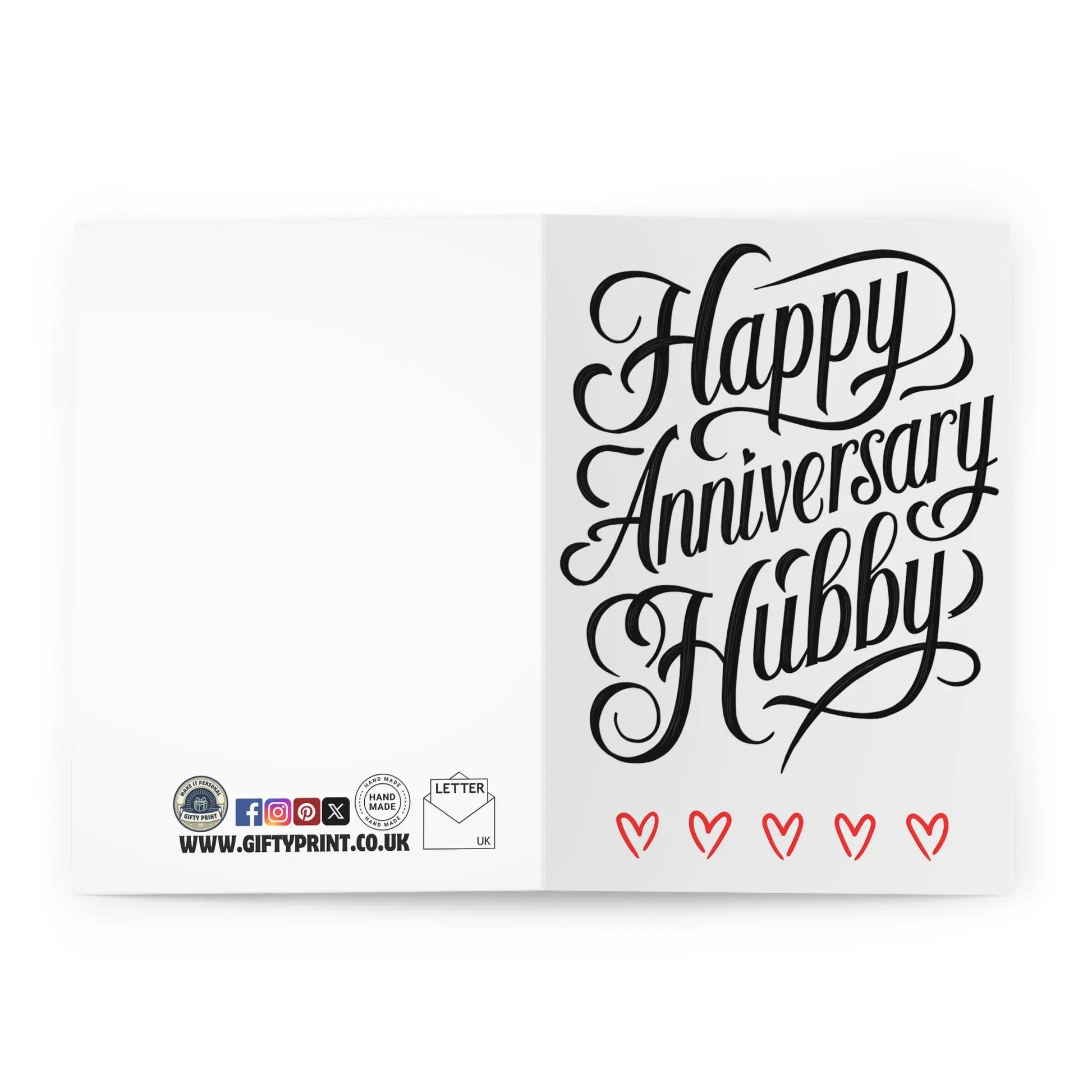 Anniversary Cardn Celebrate another year with your love with our anniversary card featuring a romantic red hearts design. The perfect way to show your hubby just how much he means to you. Make his heart skip a beat (and maybe even shed a tear) with this heartfelt message.