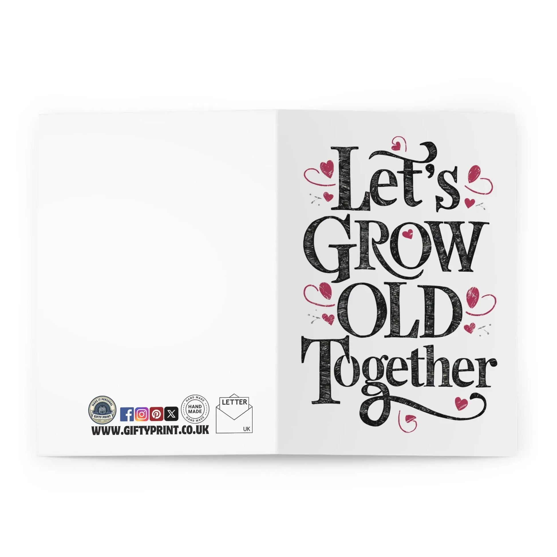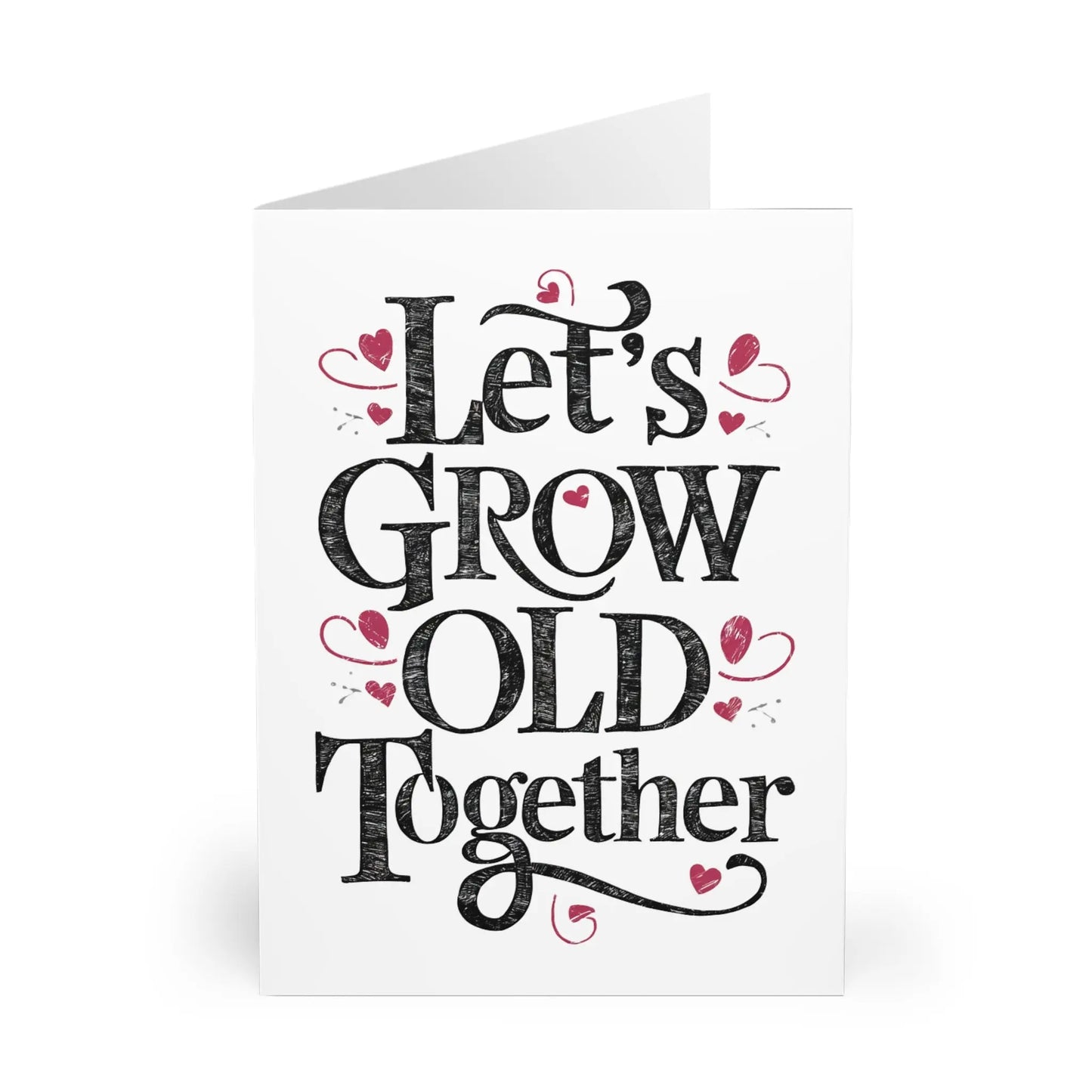 Anniversary Card , Celebrate your love with the Anniversary Card let's Grow Old Together. This card's playful design features a tree growing old together, representing the lasting bond of your relationship. Give it to your significant other and remind them that your love will continue to grow and evolve over time.