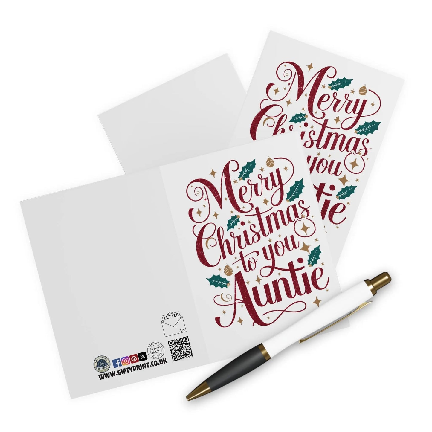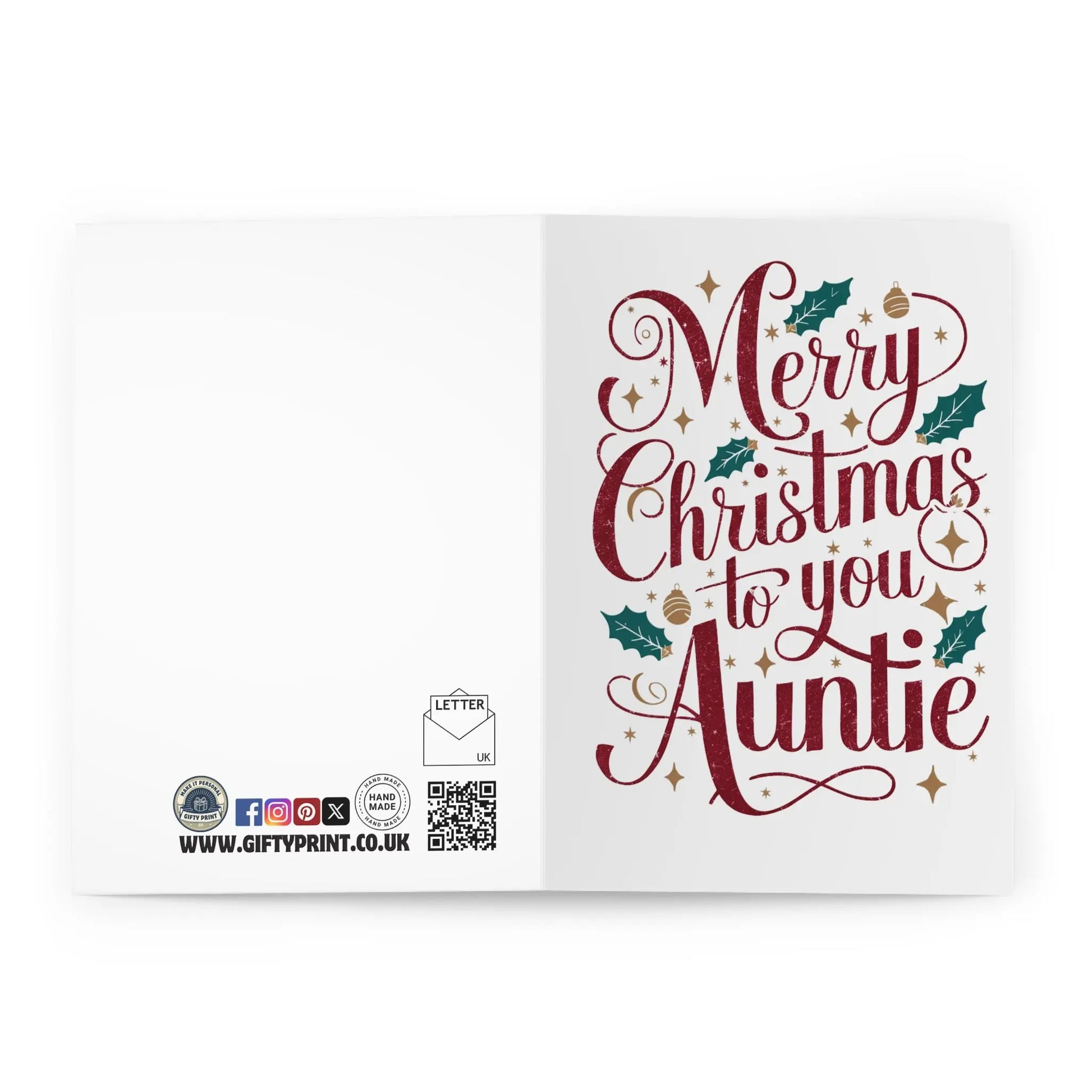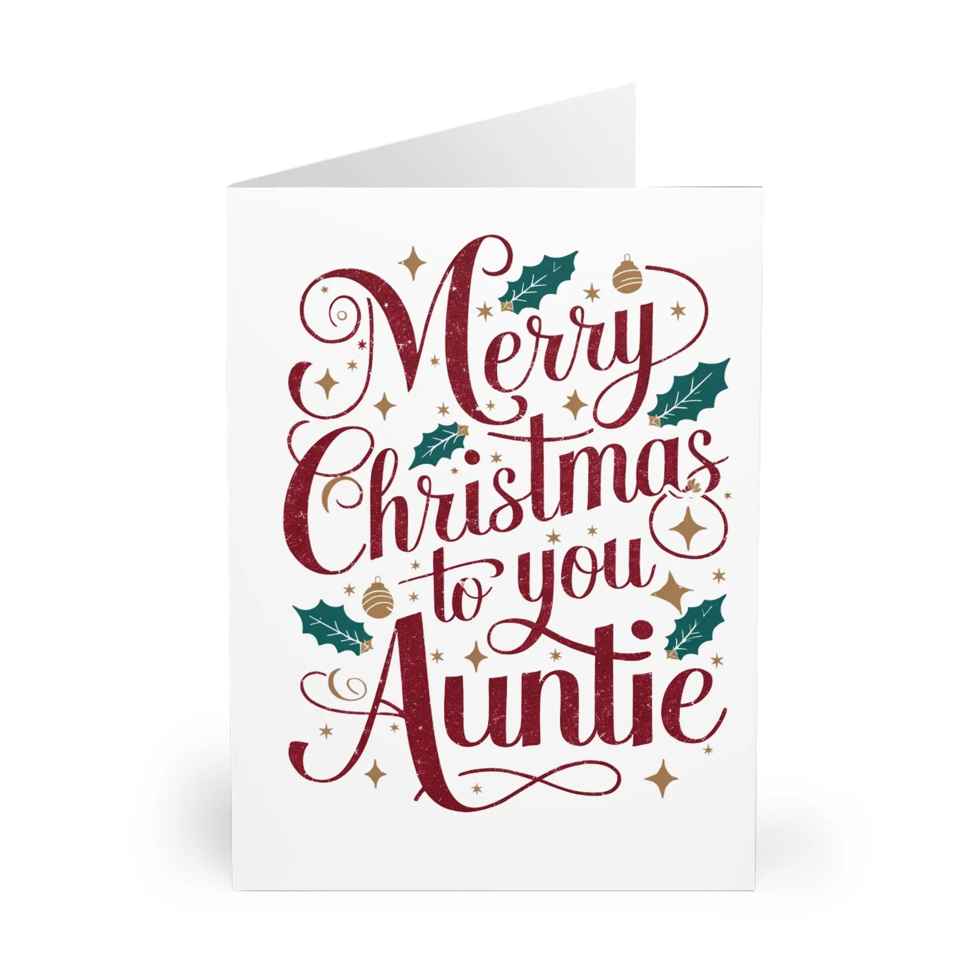 Auntie Christmas Card, Send holiday cheer to your favourite aunt with our Christmas card, featuring the playful message 'Merry Christmas To You Auntie.' It's the perfect way to show your love and appreciation (and maybe even get in her good graces for the next family gathering). Happy holidays from our quirky family to yours!