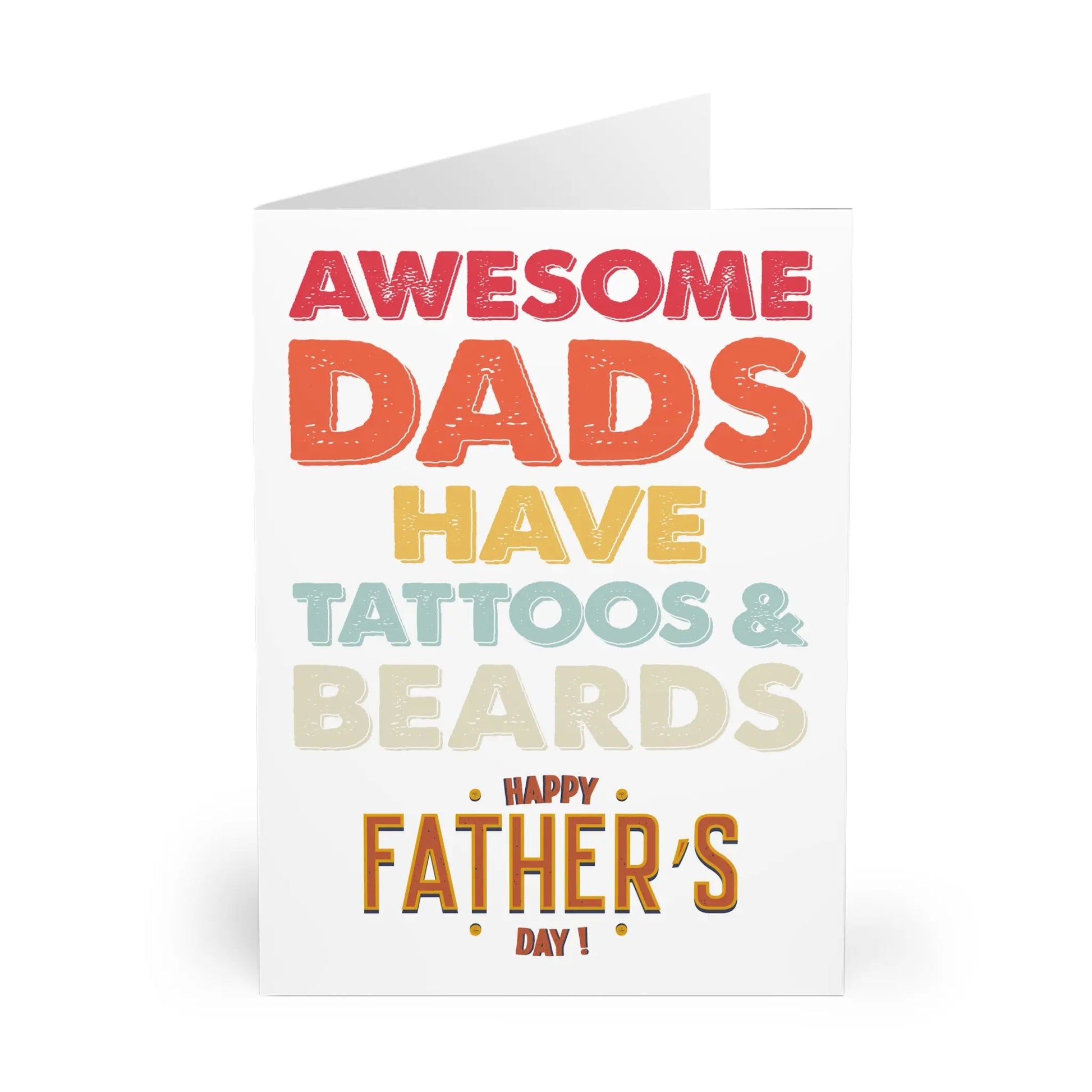 Awesome Dads Have Tattoos & Beards Fathers Day Card