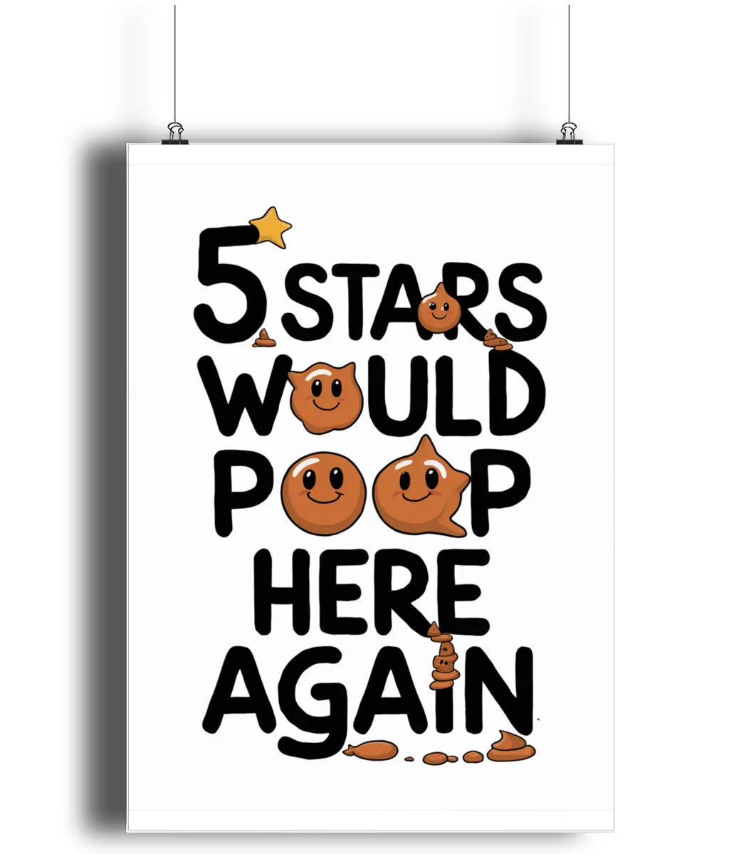 Product Details For Bathroom Art 5 Stars Would Poop Here Again