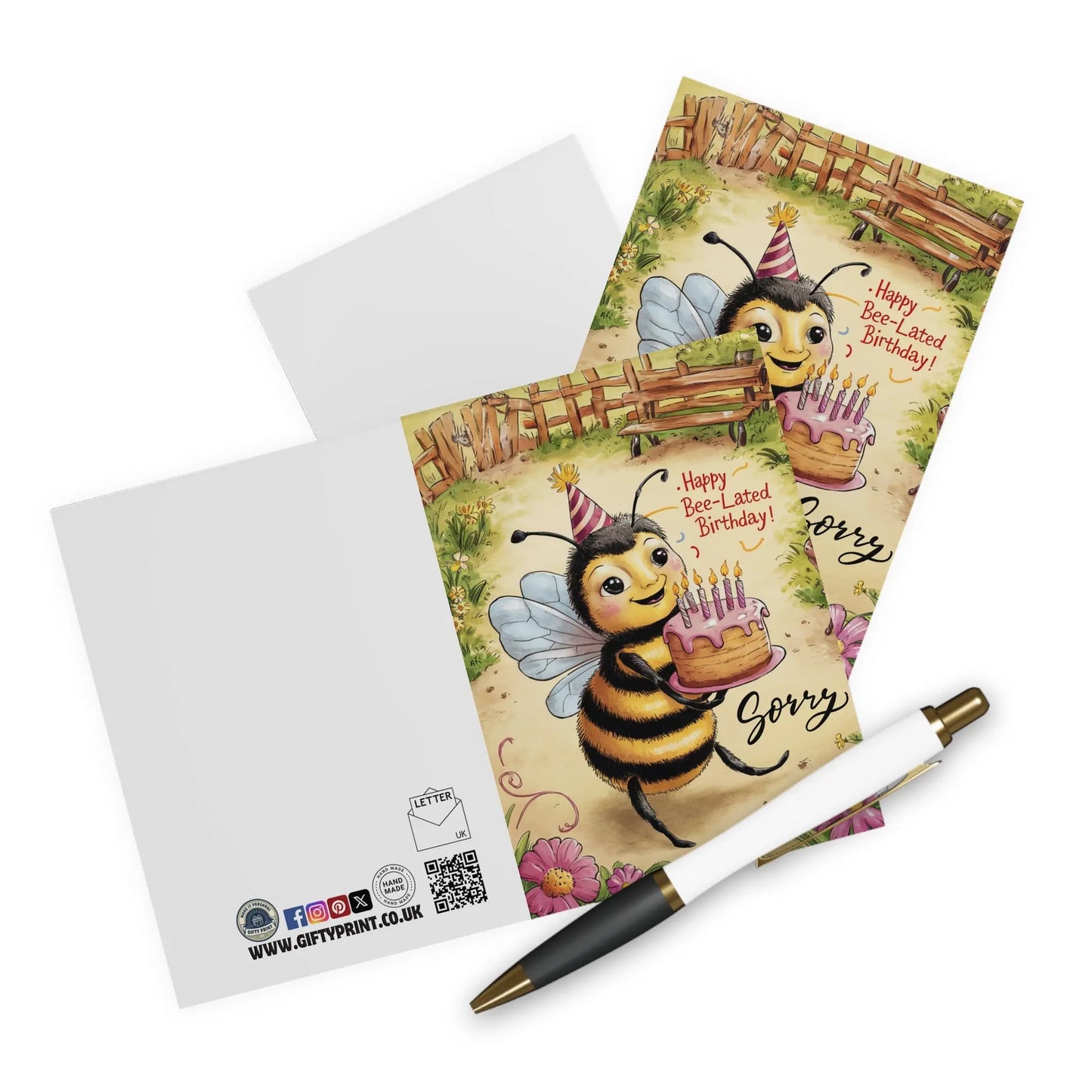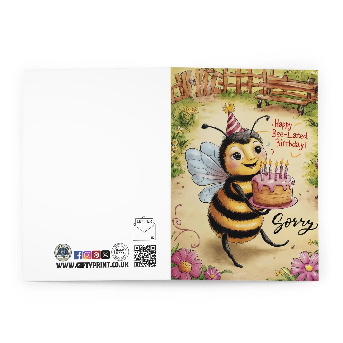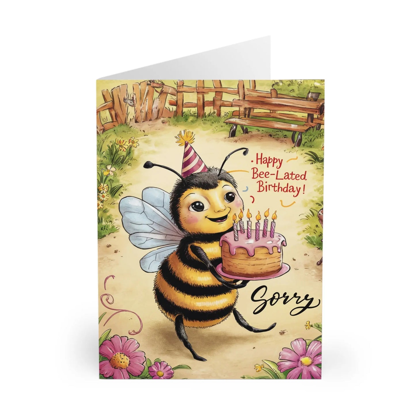 Belated Birthday Card, Don't bee-late in sending this adorable belated birthday card featuring a happy bee! Show them you care (honey)!
