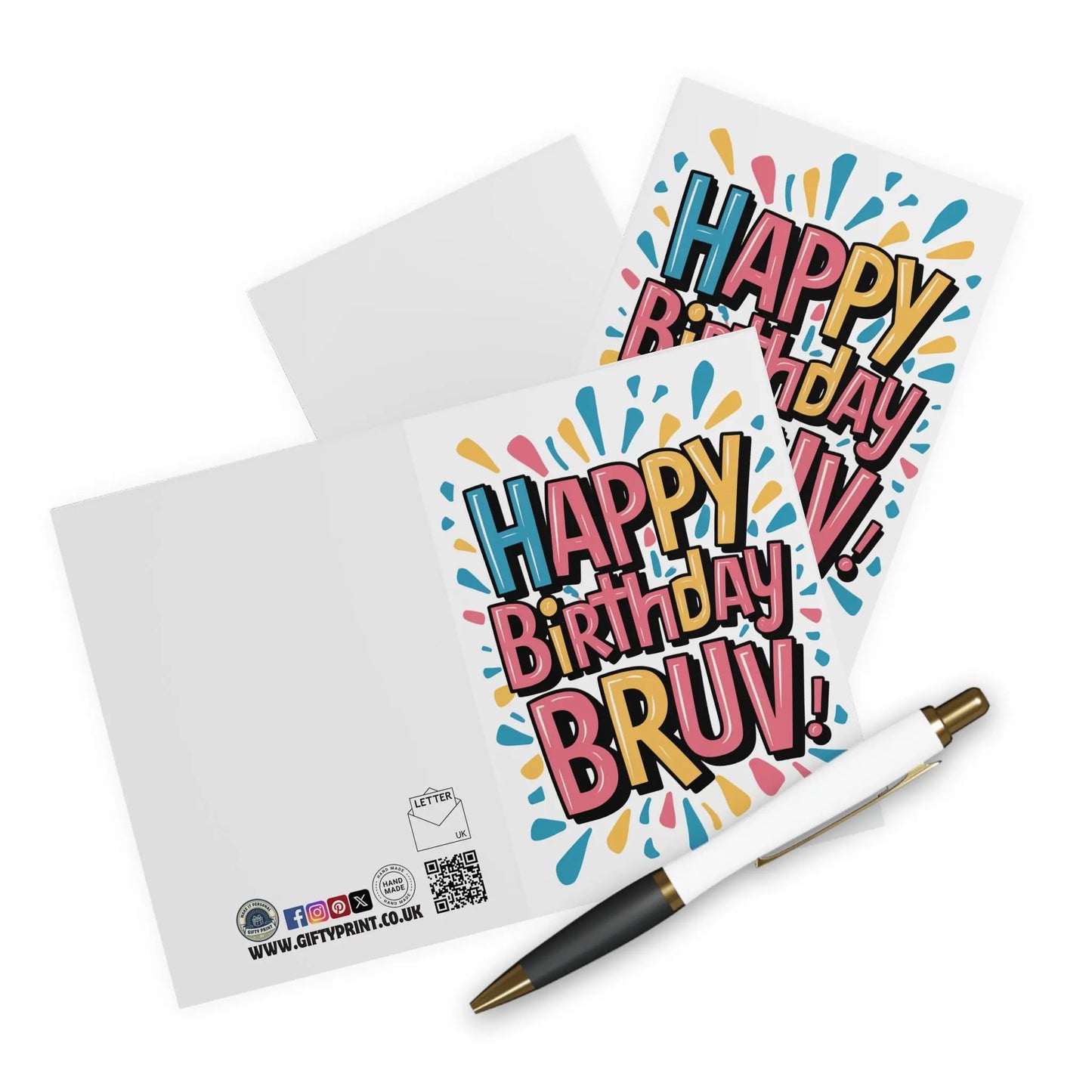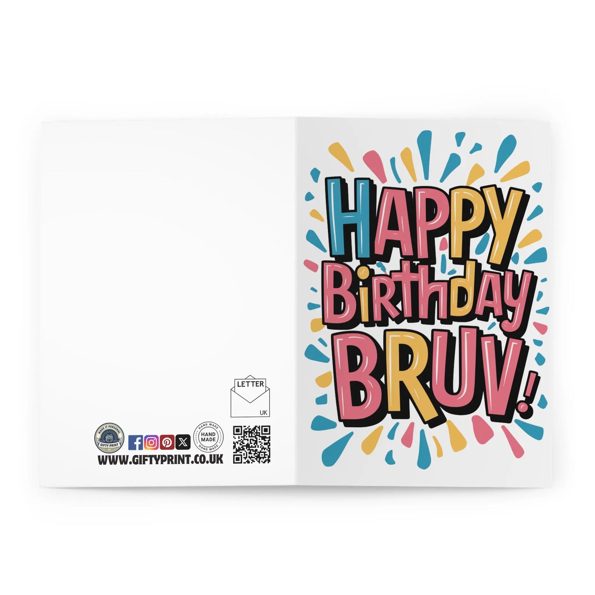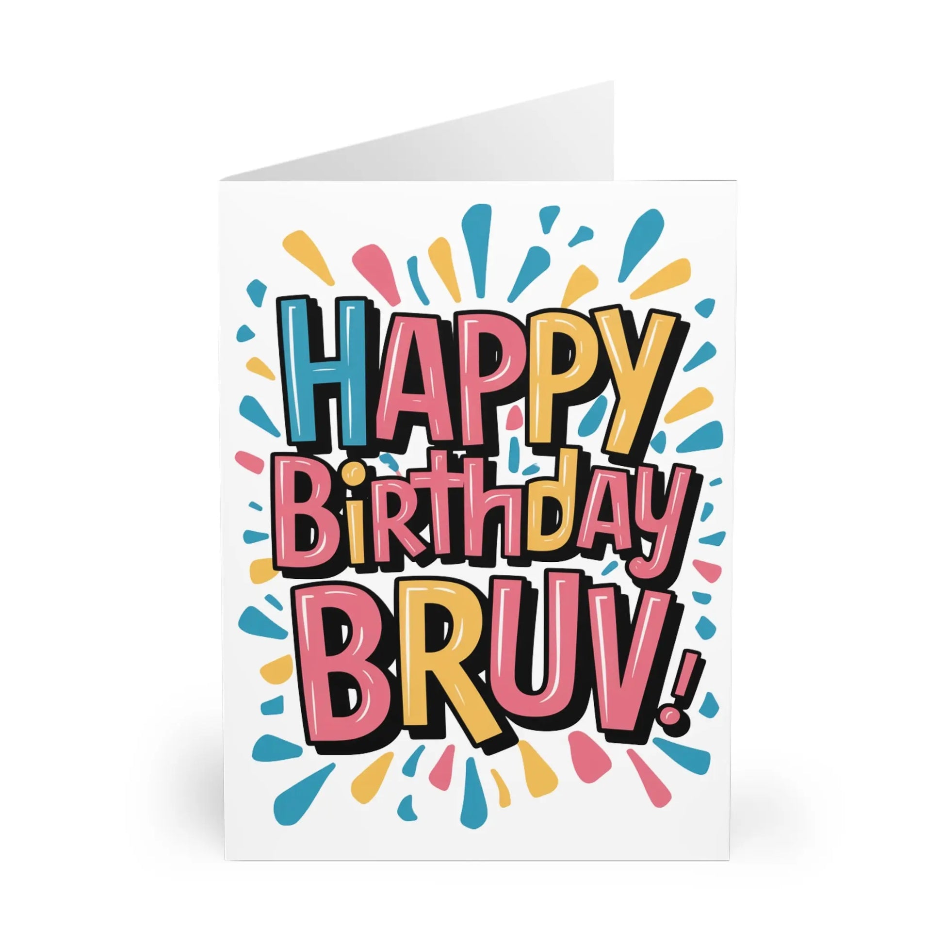 brother birthday card, Wish them a happy birthday with this playful Happy Birthday Bruv Birthday Card! Featuring a colourful design and a fun play on words, this card is sure to bring a smile to their face. Perfect for showing your sibling some love on their special day.