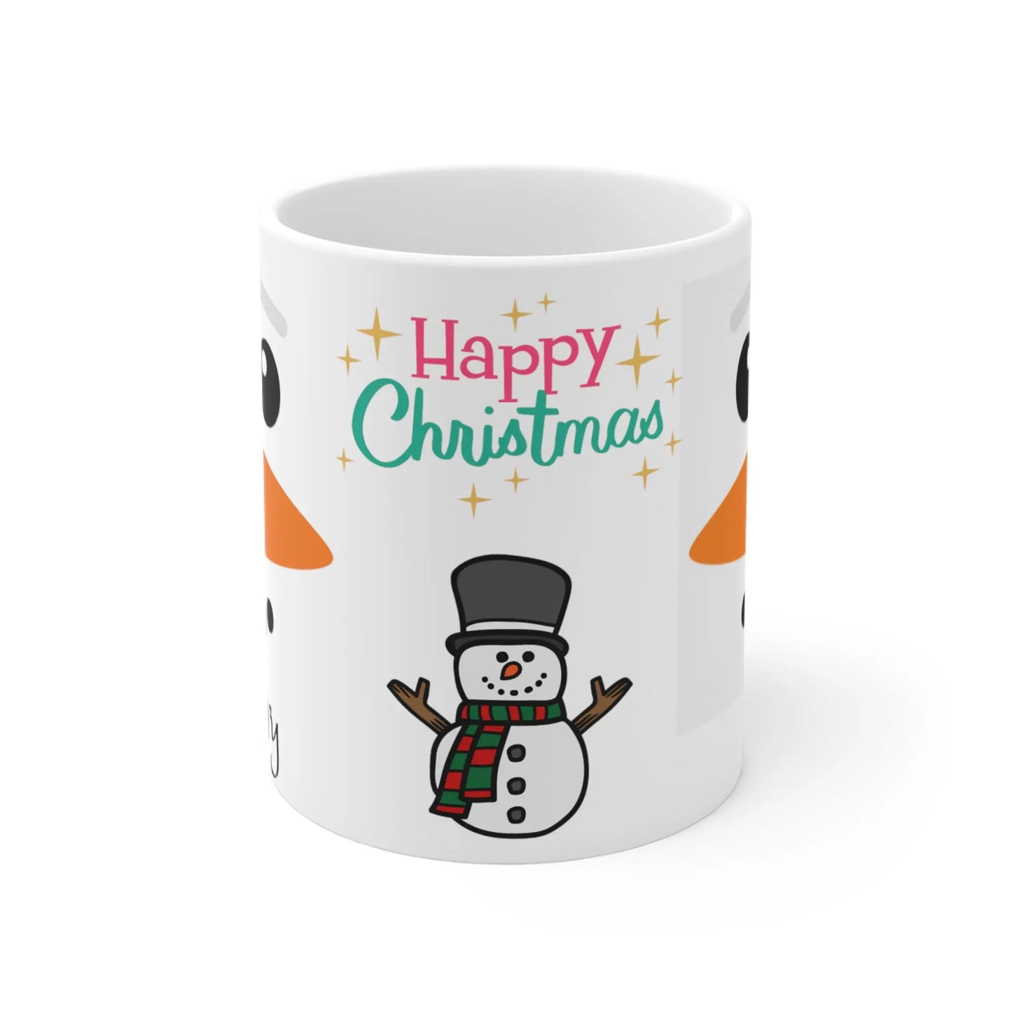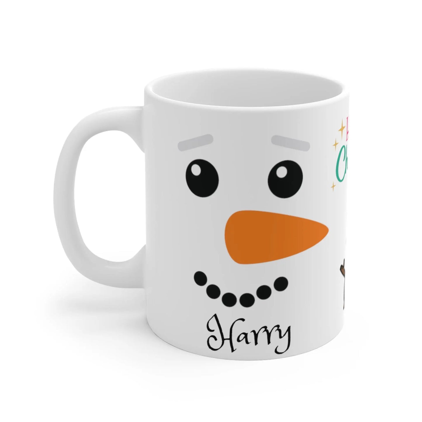Children's Christmas Mug, Make your little one's holiday mornings even more special with our Personalised Children's Christmas Mug featuring a cute snowman face. Perfect for hot cocoa or milk (and don't forget the marshmallows!), this mug will bring joy to the whole family. A personalised touch to spread holiday cheer!