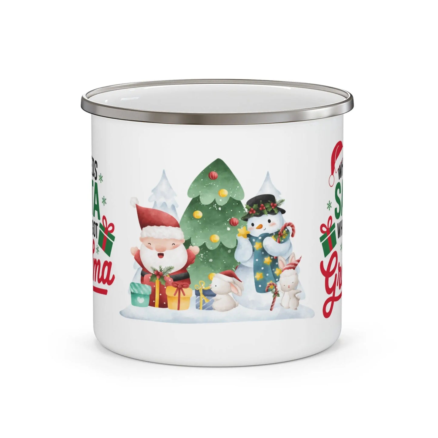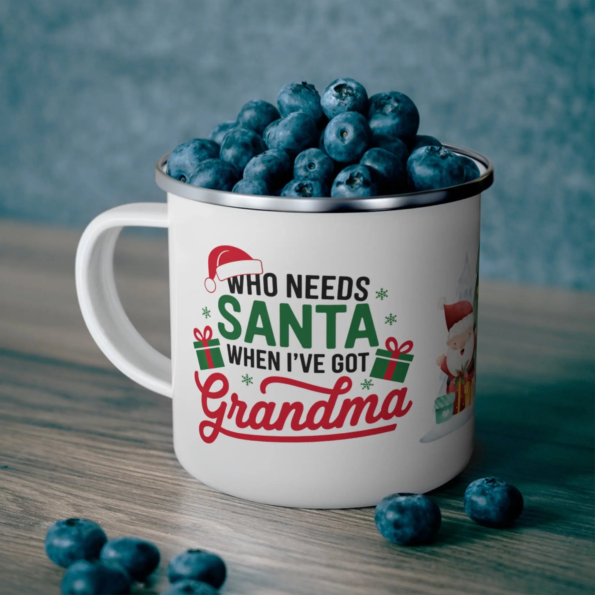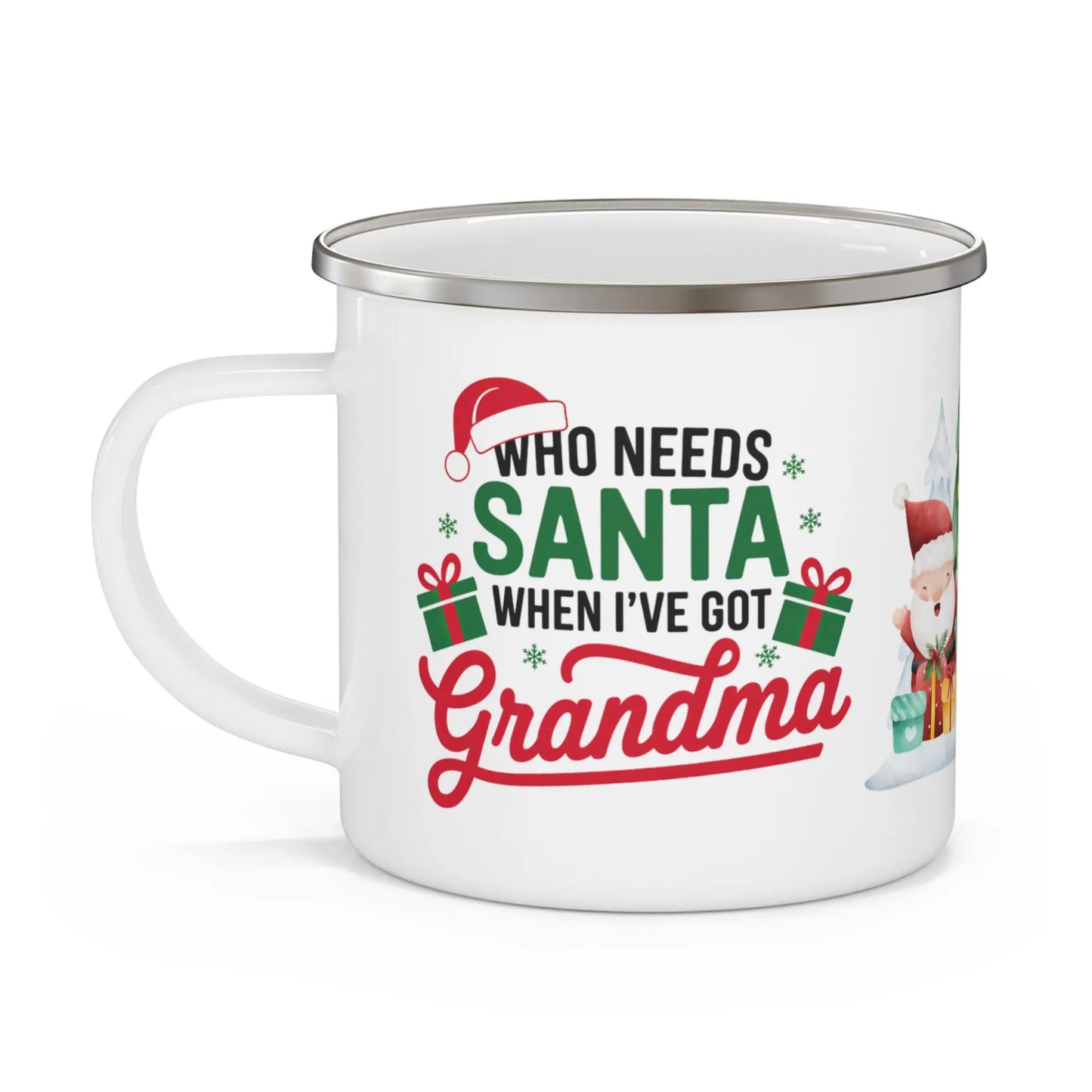 Children's Christmas Mug, No need for Santa when you've got this enamel mug! Perfect for children, Grandma's love will always warm their hearts. No worries about breakage with this durable, stylish mug. You'll be the favourite grandparent all year round!