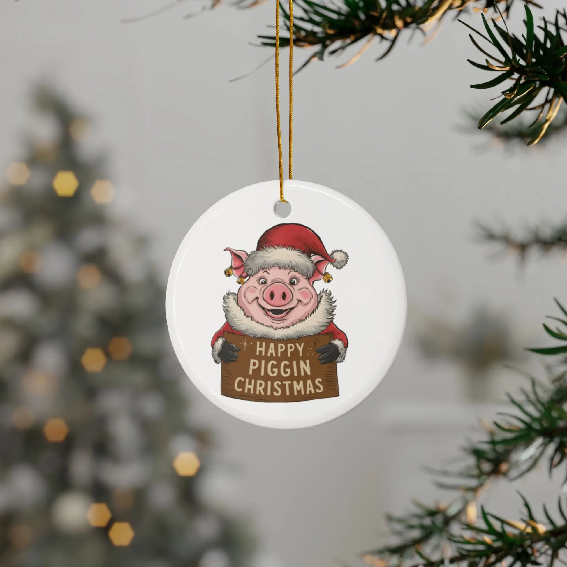 Christmas Bauble Merry Piggin Christmas Pig Ceramic