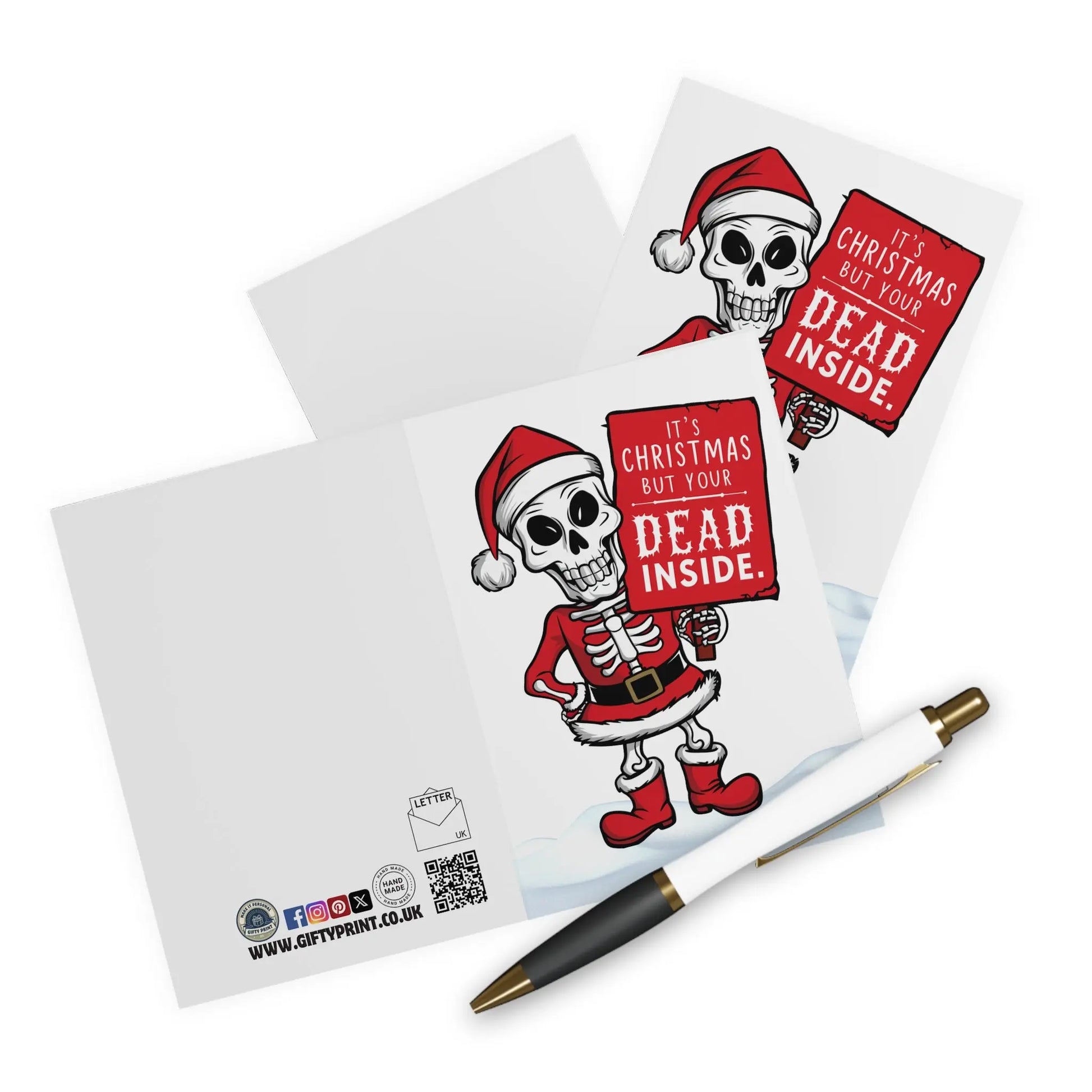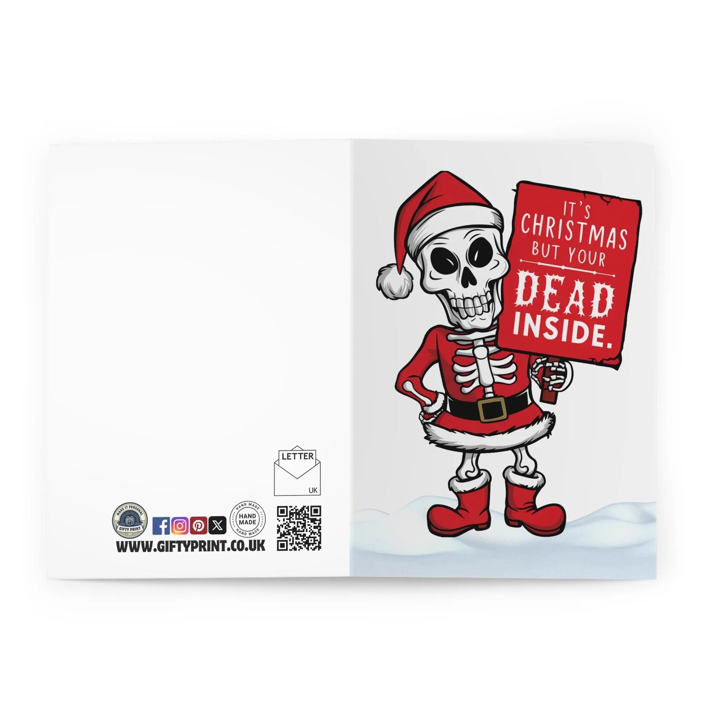Send some holiday cheer (ironically) with this Christmas card for those who may not be feeling the most festive. Perfect for the sarcastic or dark humor lover, this card features the message "Christmas card when you're dead inside but it's Christmas" (Get it? "Dead" and "decked" inside!) Sure to bring a smile (or an eye roll) to the recipient's face.