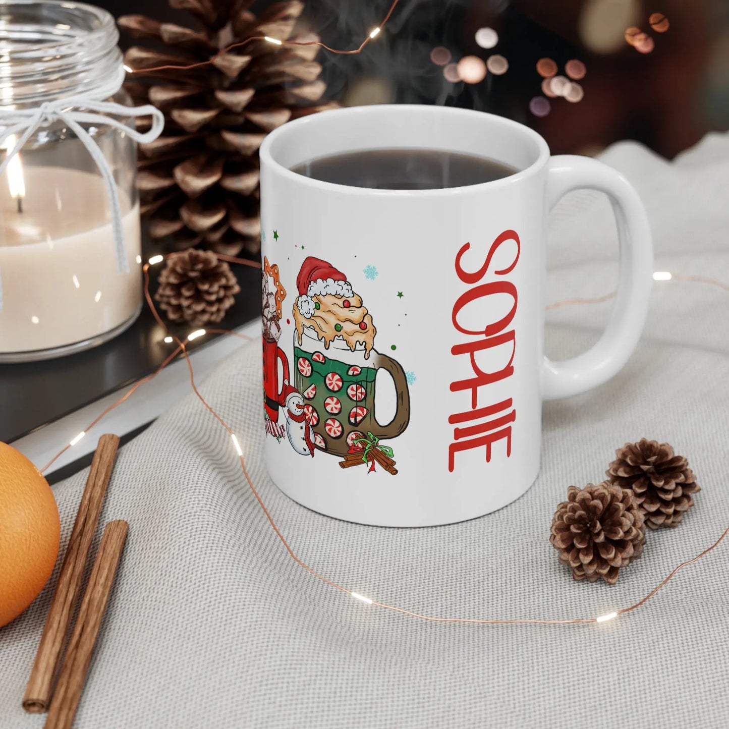 Christmas Mug, Get into the holiday spirit with our Personalised Christmas Mug for the perfect Hot Choc, Coffee or Latte experience. Customise it with a name for a unique touch. Sip in style and spread the cheer!