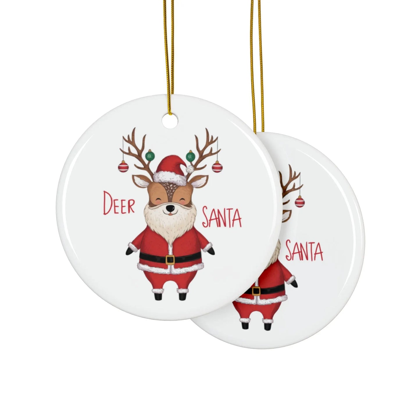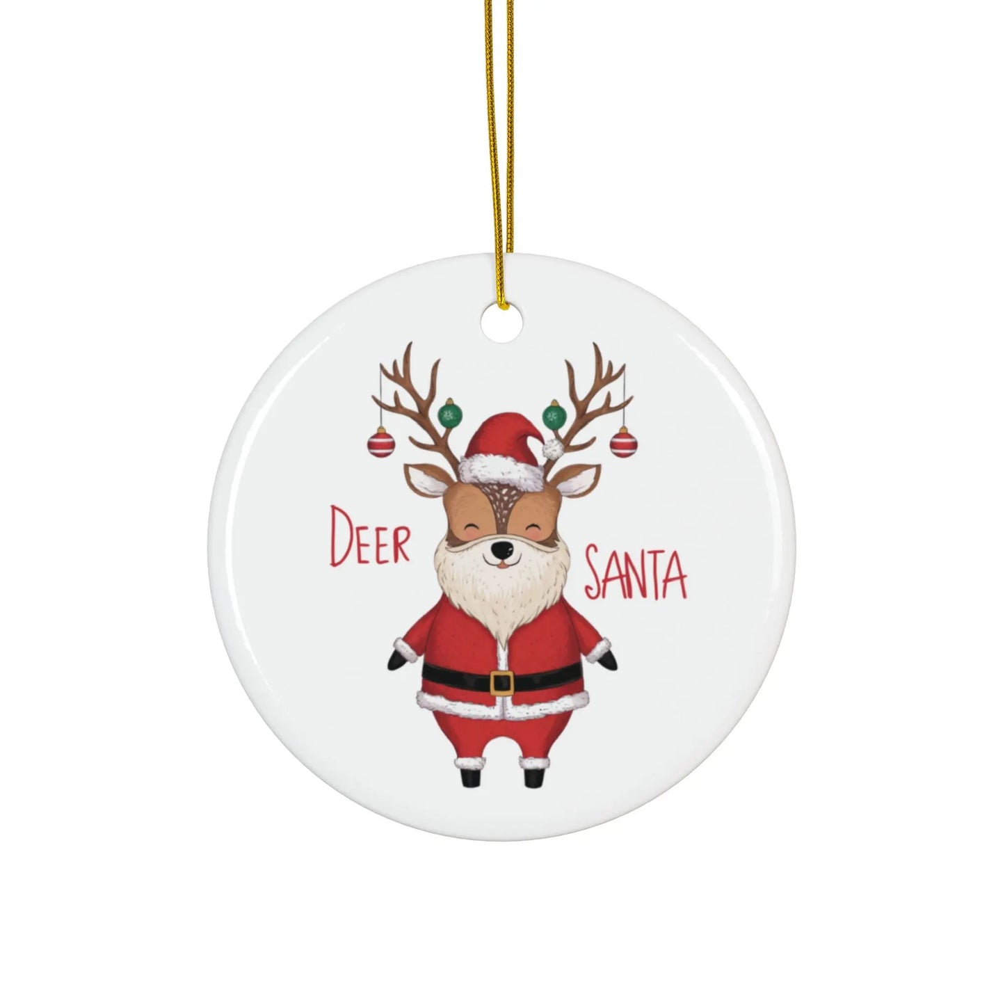 Christmas Tree Bauble, Upgrade your Christmas tree game with the Deer Santa Deer ornament! This playful and quirky ornament is sure to add some holiday cheer with its punny name and adorable design. Perfect for anyone who loves word play and festive fun.