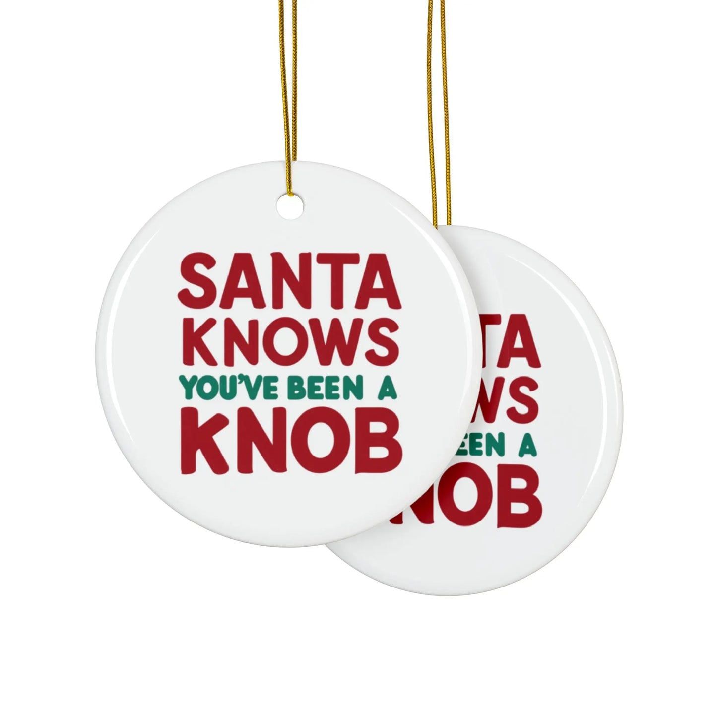 Christmas Tree Bauble Ceramic Santa Knows You've Been A Knob