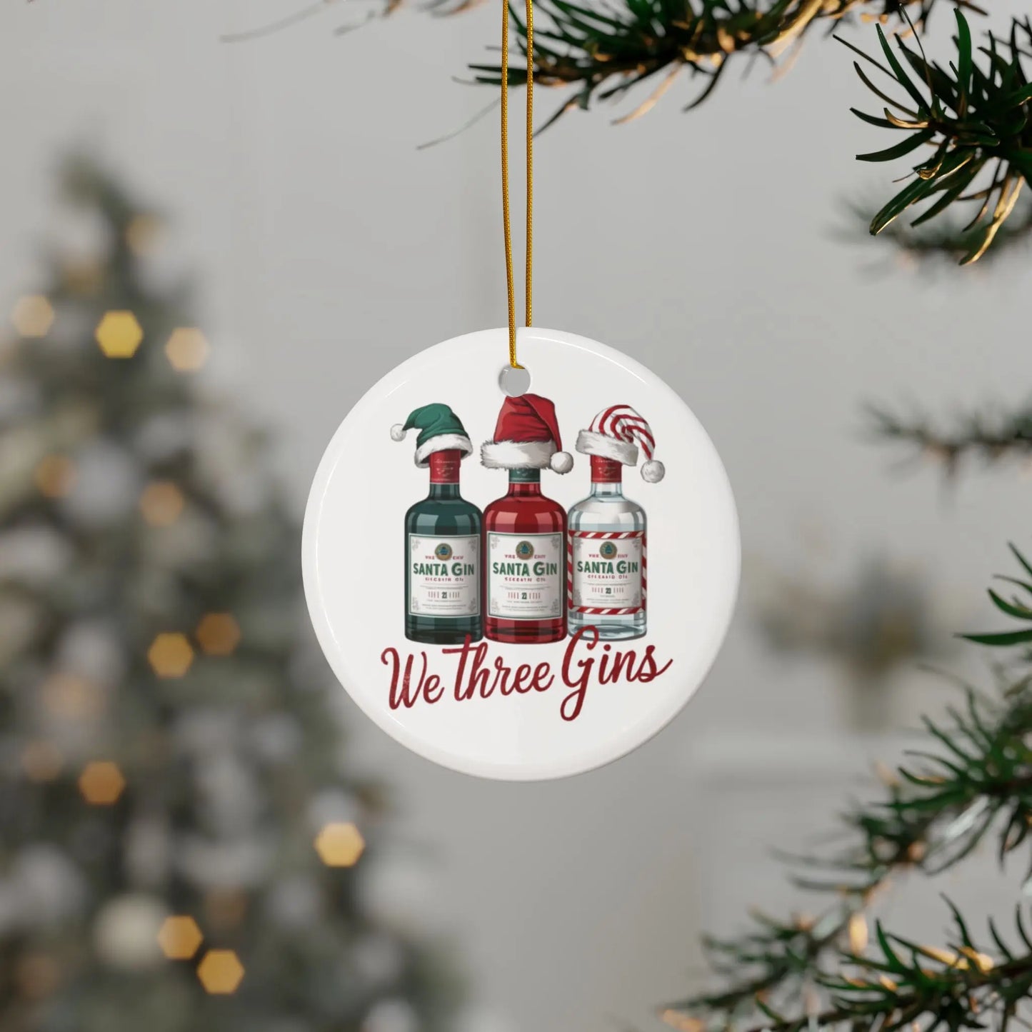 Christmas Tree Bauble Ceramic We Three Gins Christmas Decoration