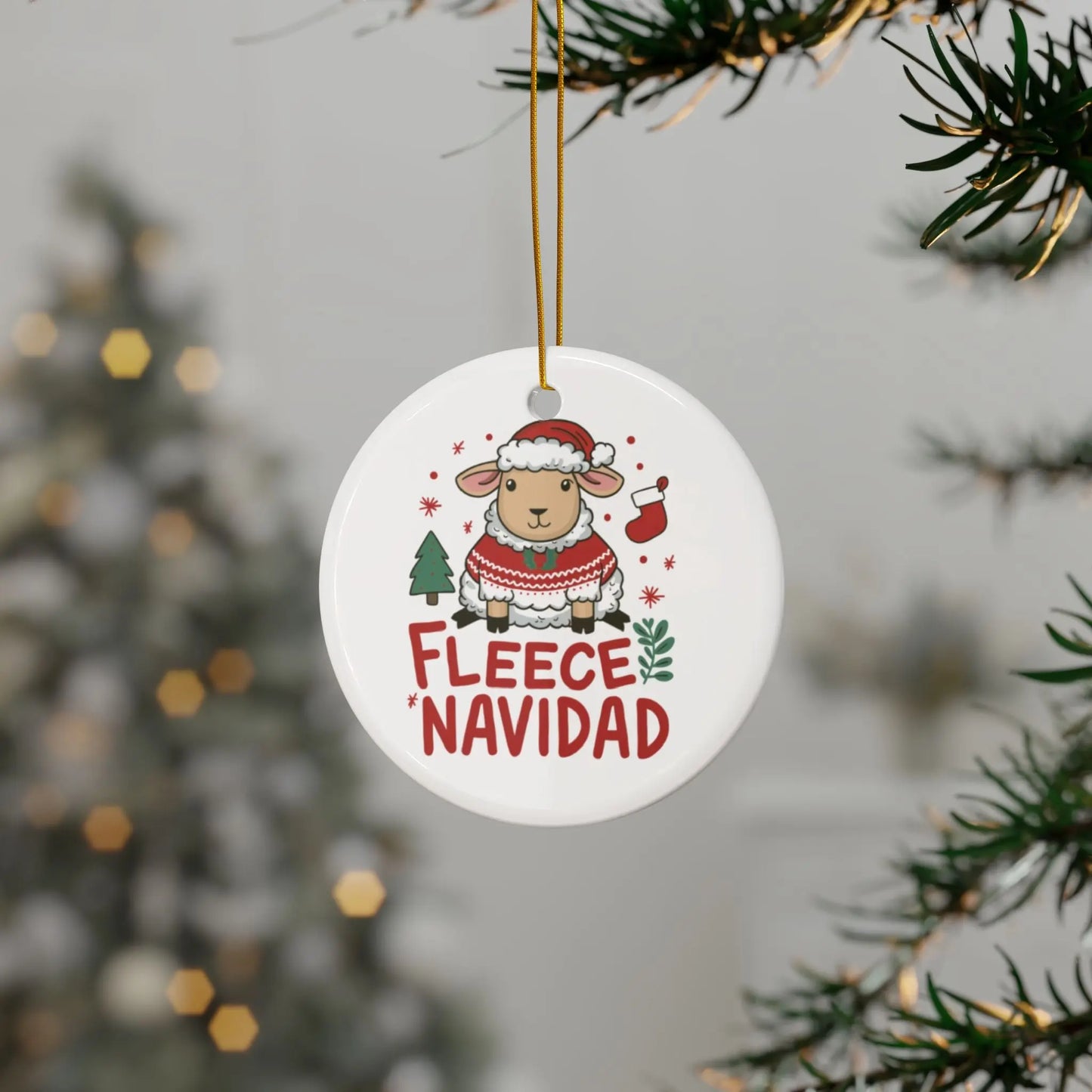 Christmas Tree Bauble, Deck the halls with this quirky Fleece Navidad Sheep Christmas Tree Bauble! adorned with a festive sheep, this bauble adds a touch of whimsy to your holiday decor. The perfect gift for the pun-loving, festive soul!