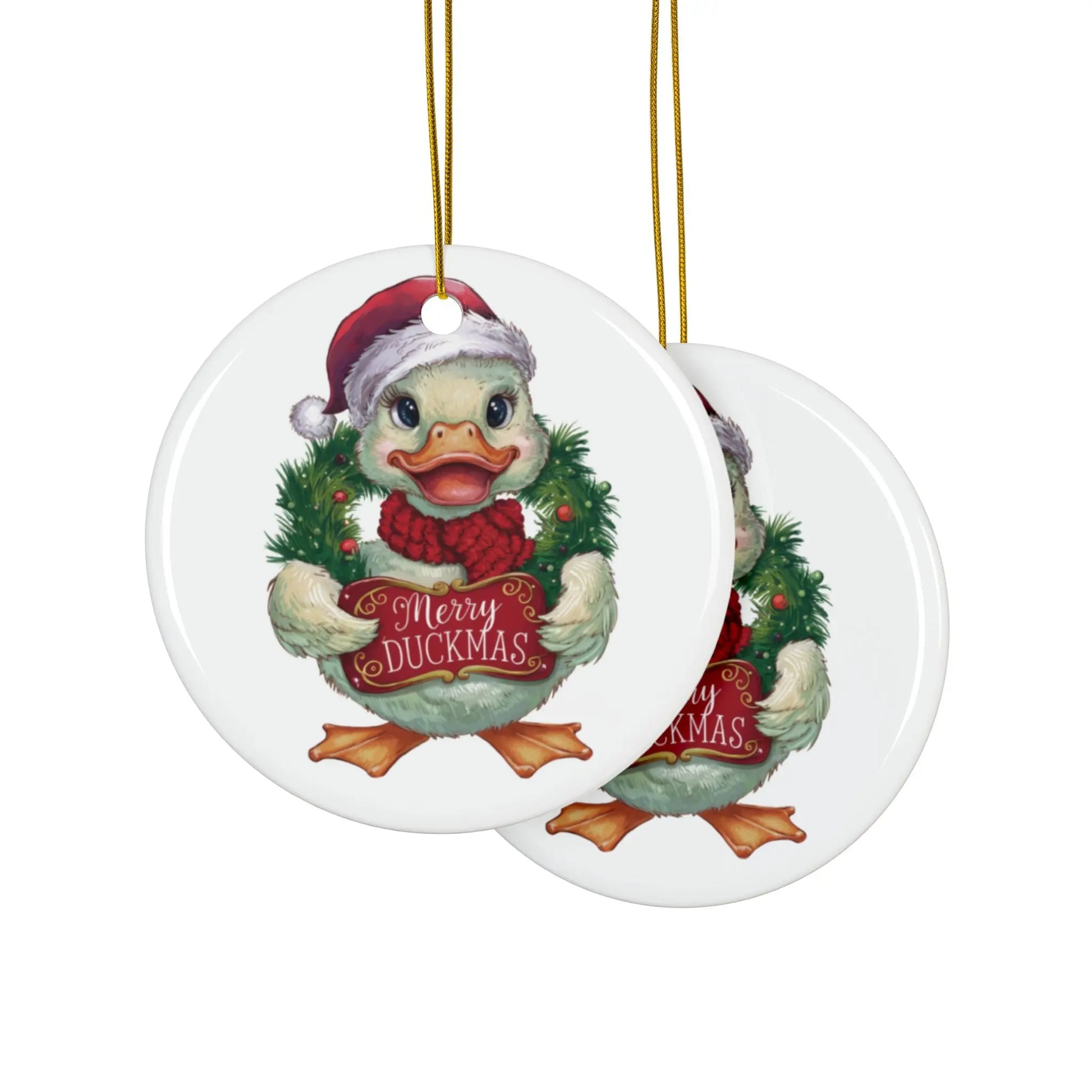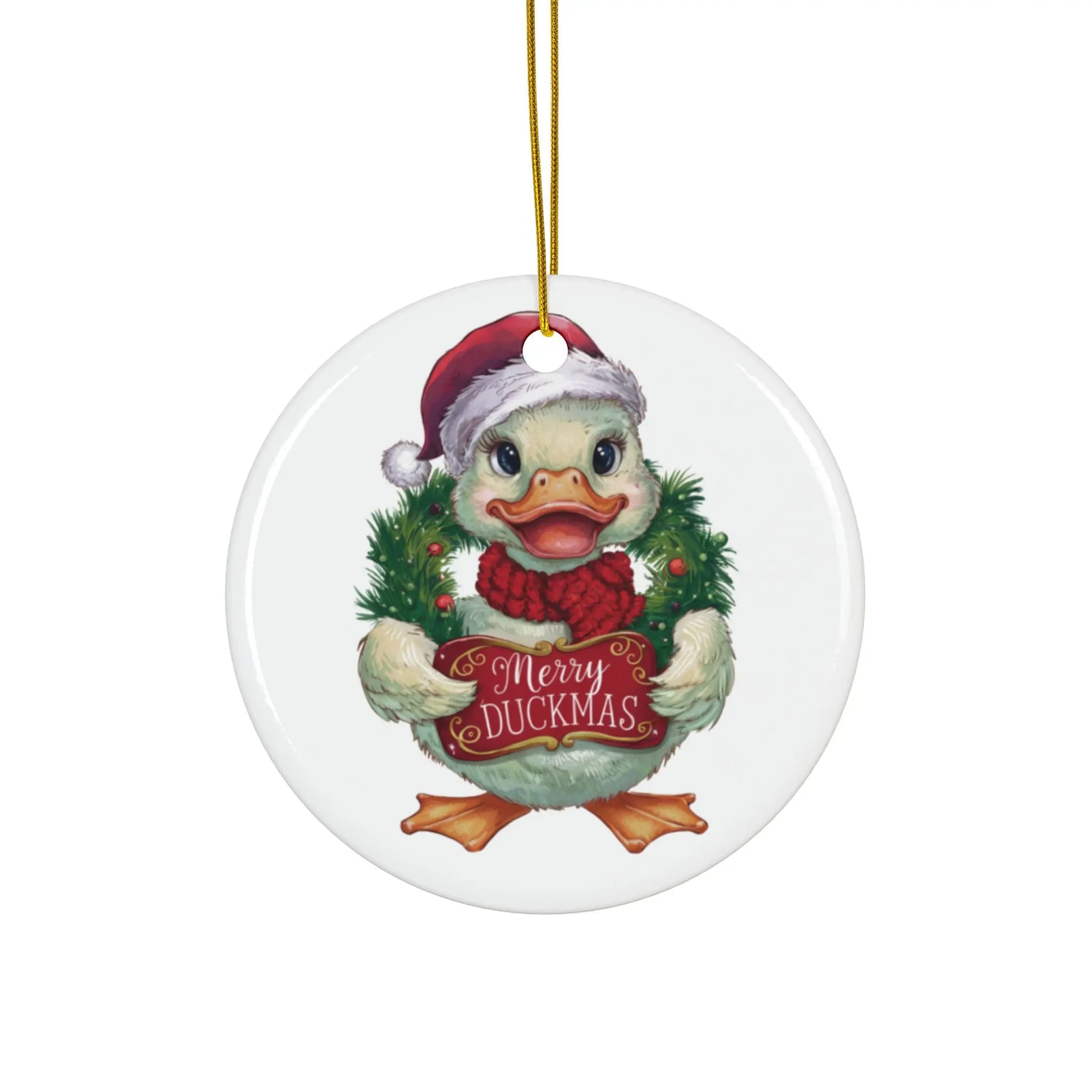 Christmas Tree Bauble, Get quackin' this holiday with our Merry Duckmas bauble! Featuring an adorable duck and festive design, this bauble will add a touch of whimsy to your Christmas tree. Give your holiday decor a quirky twist with our Merry Duckmas bauble!