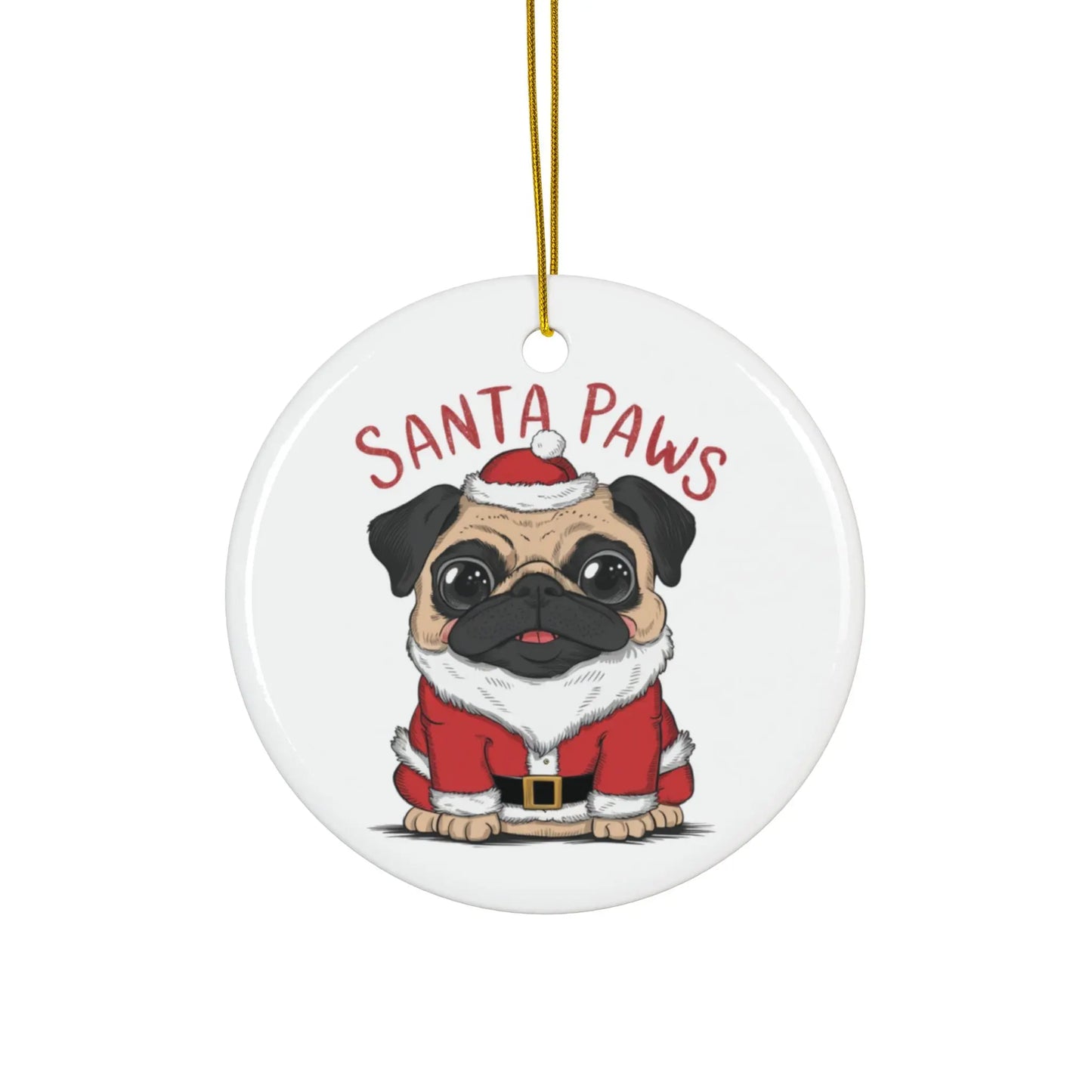 Christmas Tree Bauble, Get ready to add some quirky cuteness to your Christmas tree with the Merry Pugmass Pug Dog Christmas Tree Bauble! This playful bauble features an adorable pug wearing a Santa hat and brings a fun, festive touch to your holiday decorations. Get in the holiday spirit with this must-have bauble.