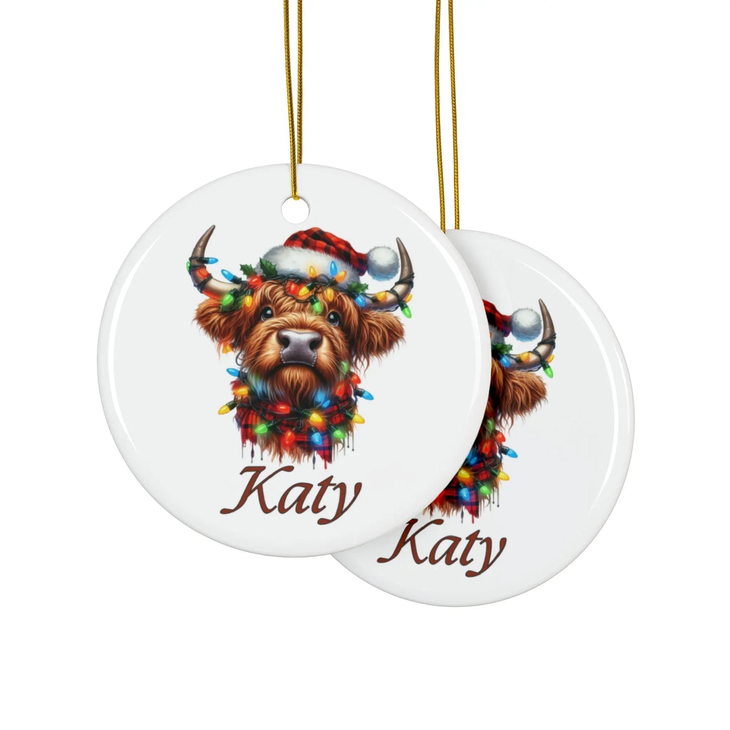 Christmas Tree Bauble, Get festive with a personalised touch! Our charming Highland Cow Christmas Tree Bauble adds a touch of whimsy to any holiday decor. Featuring a personalised design of a cheerful cow, this bauble adds a playful twist to traditional Christmas ornaments. Perfect for animal lovers and anyone looking for a unique addition to their tree!