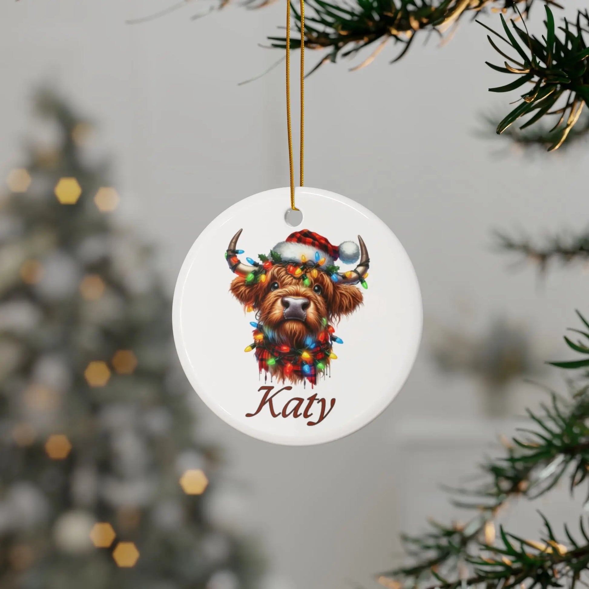Christmas Tree Bauble Personalised Christmas Highland Cow