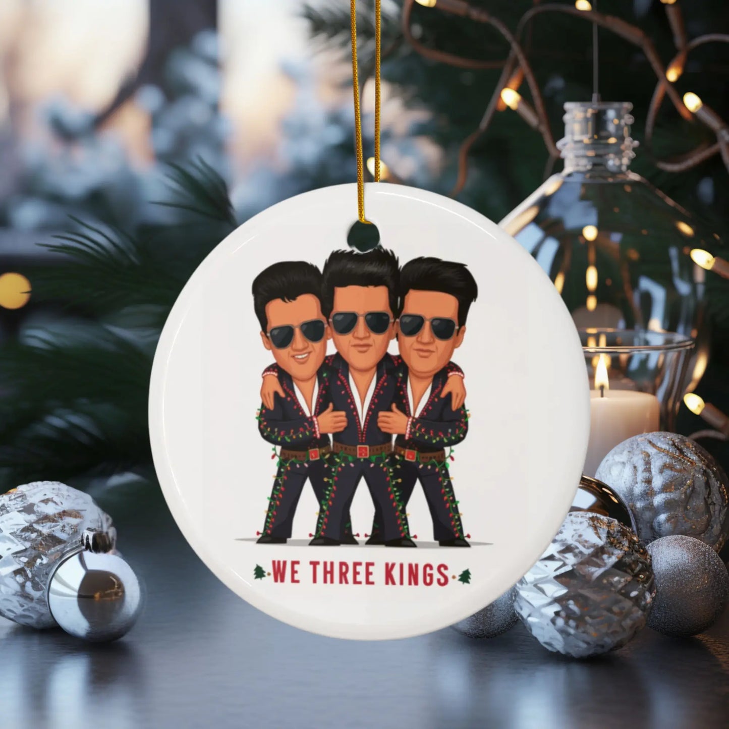 Christmas Tree Bauble We Three Kings Funny Elvis Ceramic
