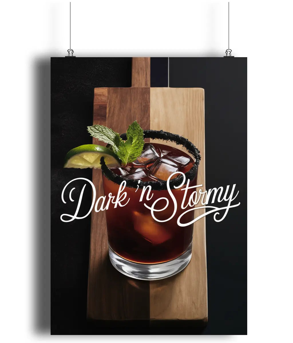 Cocktail Wall Art Print, Add a touch of personality to your home bar with our Dark & Stormy Cocktail wall art print. Perfect for any mixologist, this quirky and playful print features a unique design that is sure to be a conversation starter. Cheers to a fun and stylish addition to your home decor!