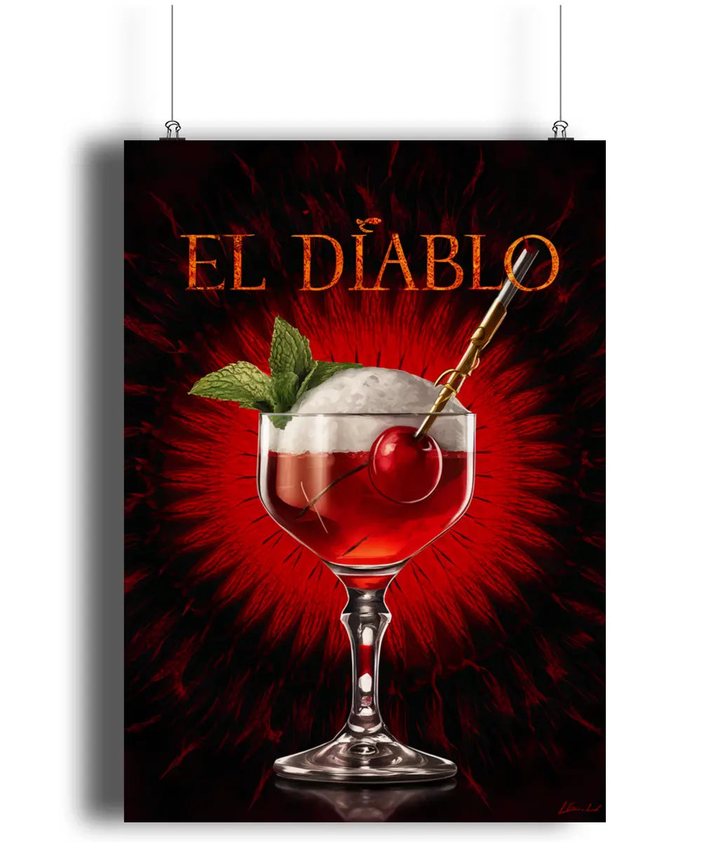 Cocktail Wall Art Print, Introduce some "spirits" to your home bar decor with this playful El Diablo Cocktail wall art print. Featuring a fun and quirky illustration, this print will add a touch of humour and style to any bar space. Raise a glass to this unique piece that's perfect for any cocktail lover.
