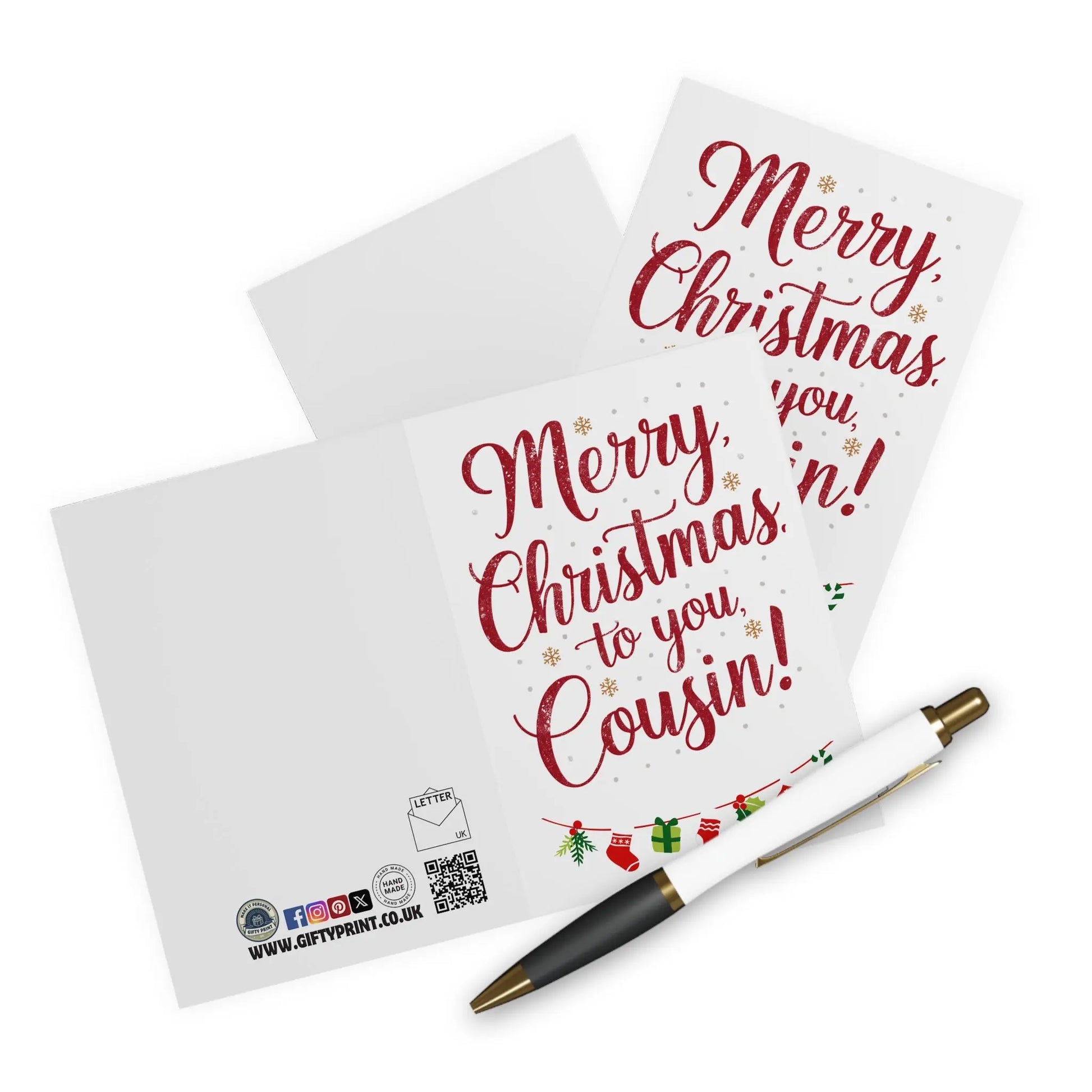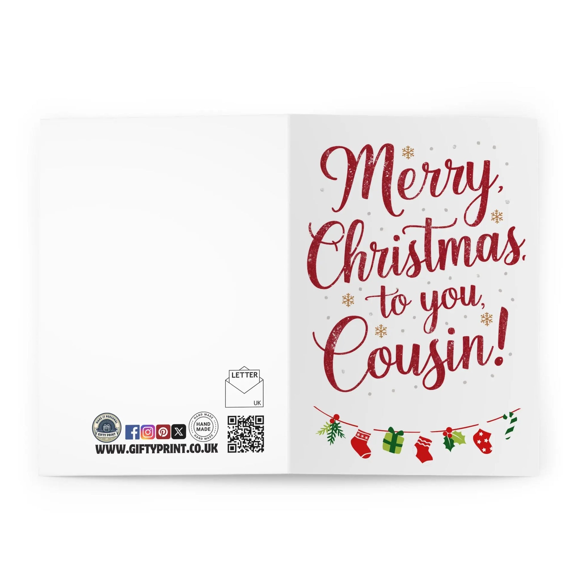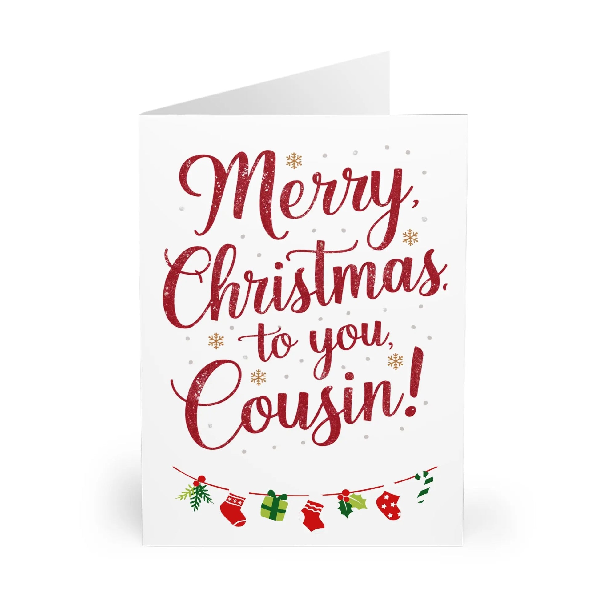 Cousin Christmas Card, Wish your cousin a merry Christmas with this beautifully designed Christmas card. Show them how much they mean to you with heartfelt wishes and holiday cheer. Don't miss the chance to spread joy and love this holiday season!