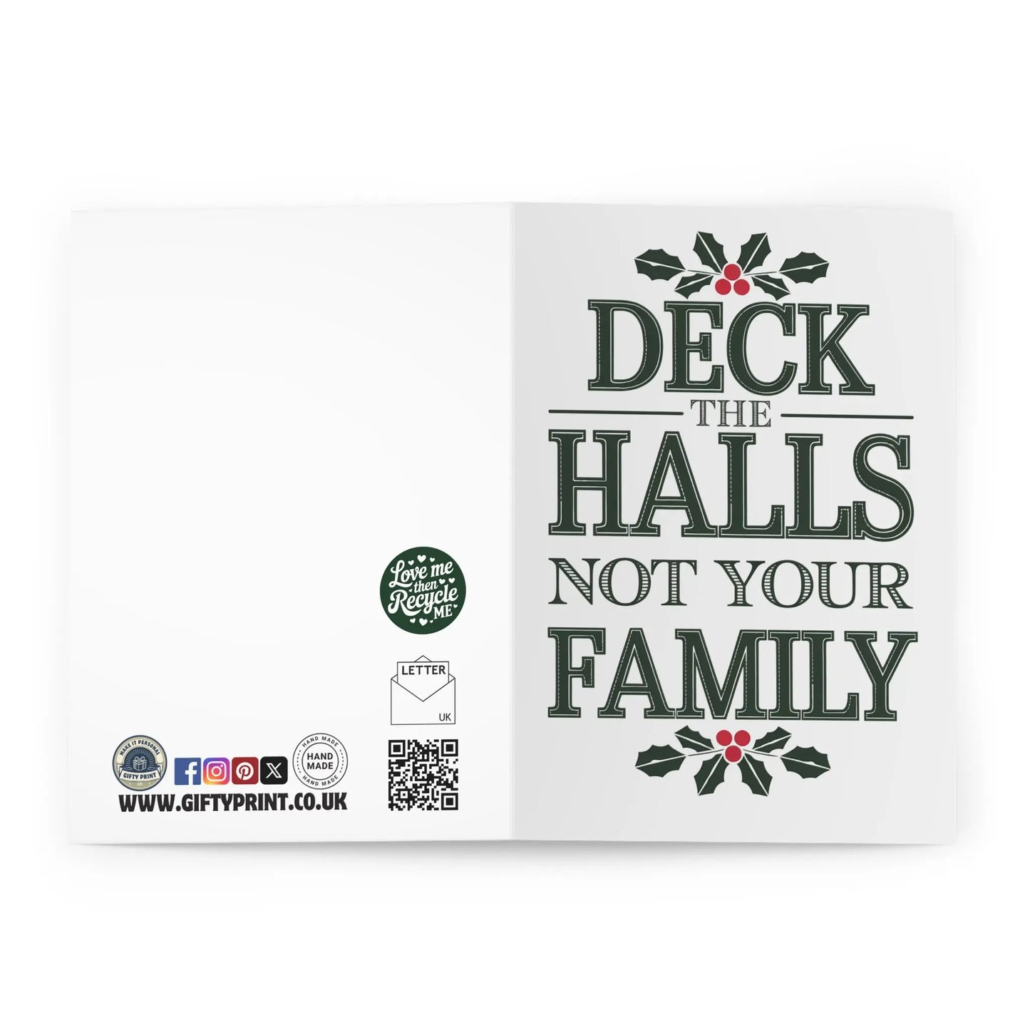 Get ready to deck the halls (and stir up some laughs) with this quirky Christmas card! Perfect for those who don't take themselves too seriously, this card will surely make your loved ones chuckle. Say goodbye to boring, traditional holiday cards and hello to a fun and unique way to spread holiday cheer. No family drama included (or guaranteed)!