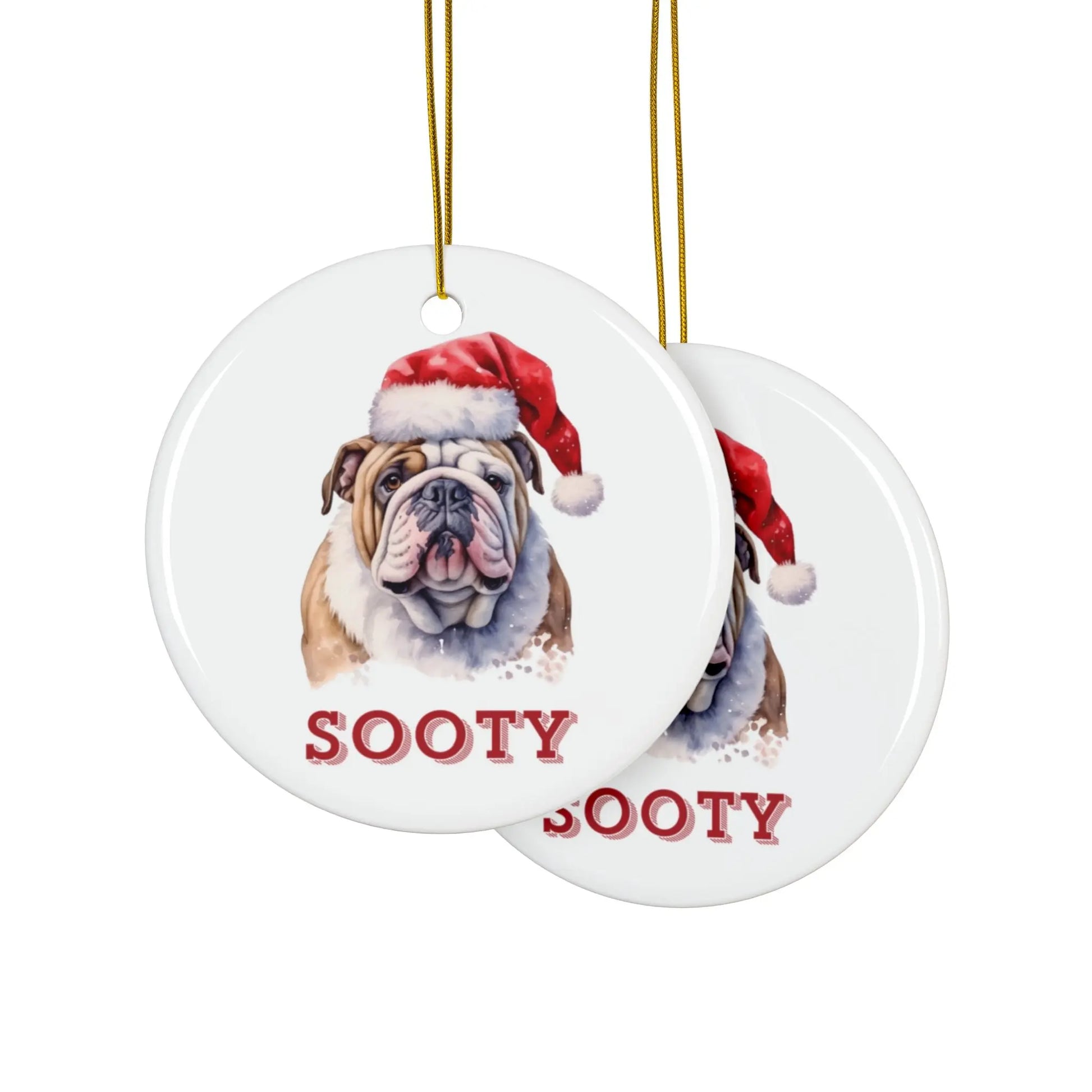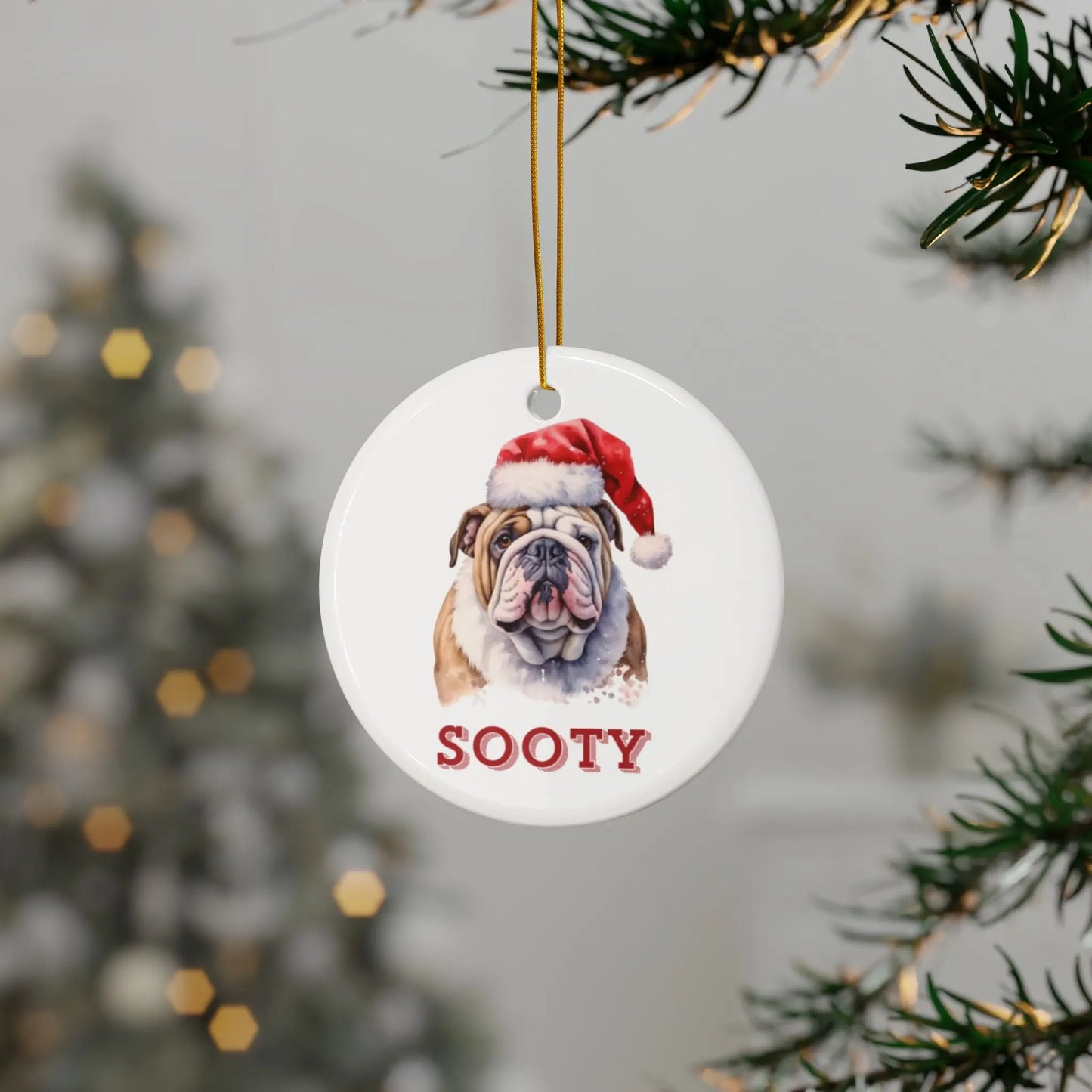 Dog Christmas Bauble, Add a personalised touch to your Christmas tree with our quirky bulldog bauble. Show off your love for bulldogs in a festive way. Makes a unique gift for any dog lover. (Fur-real!)