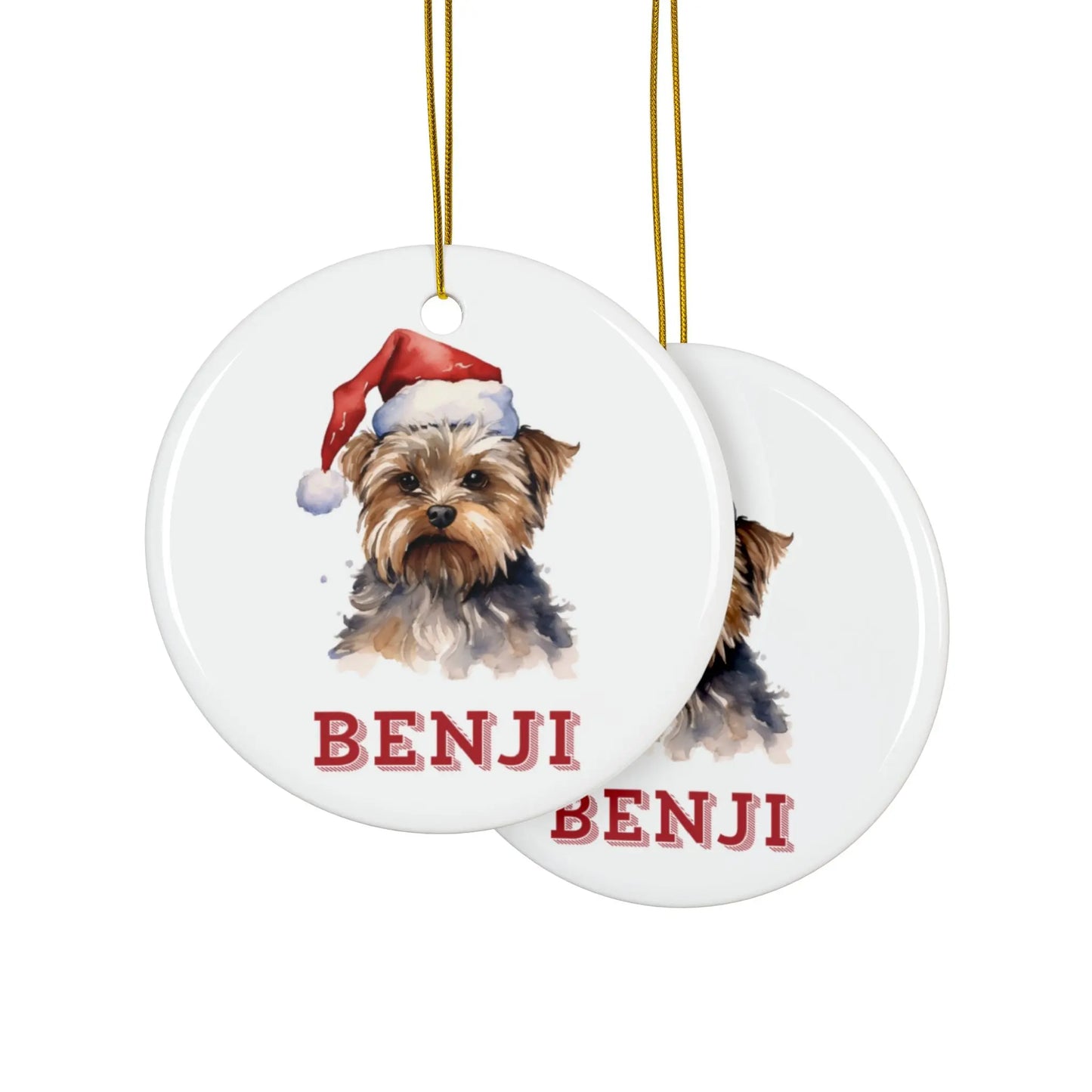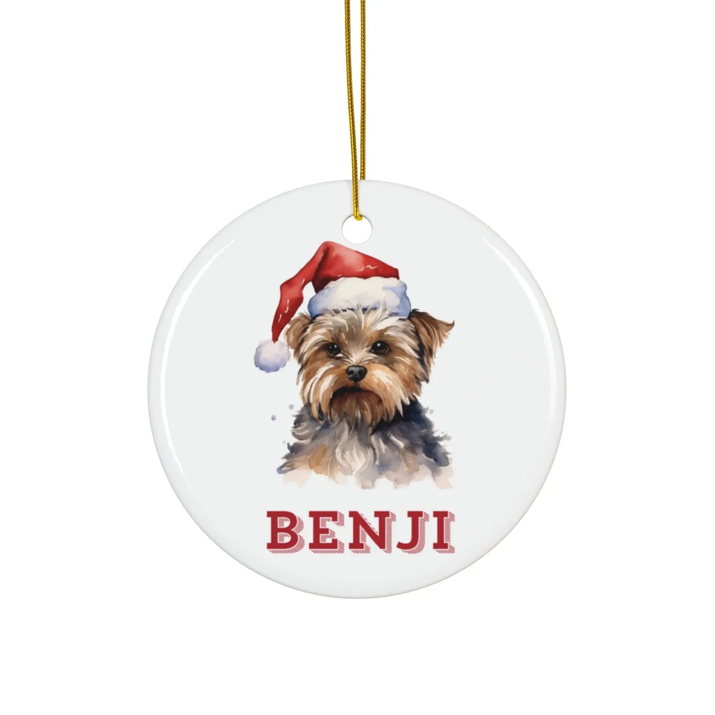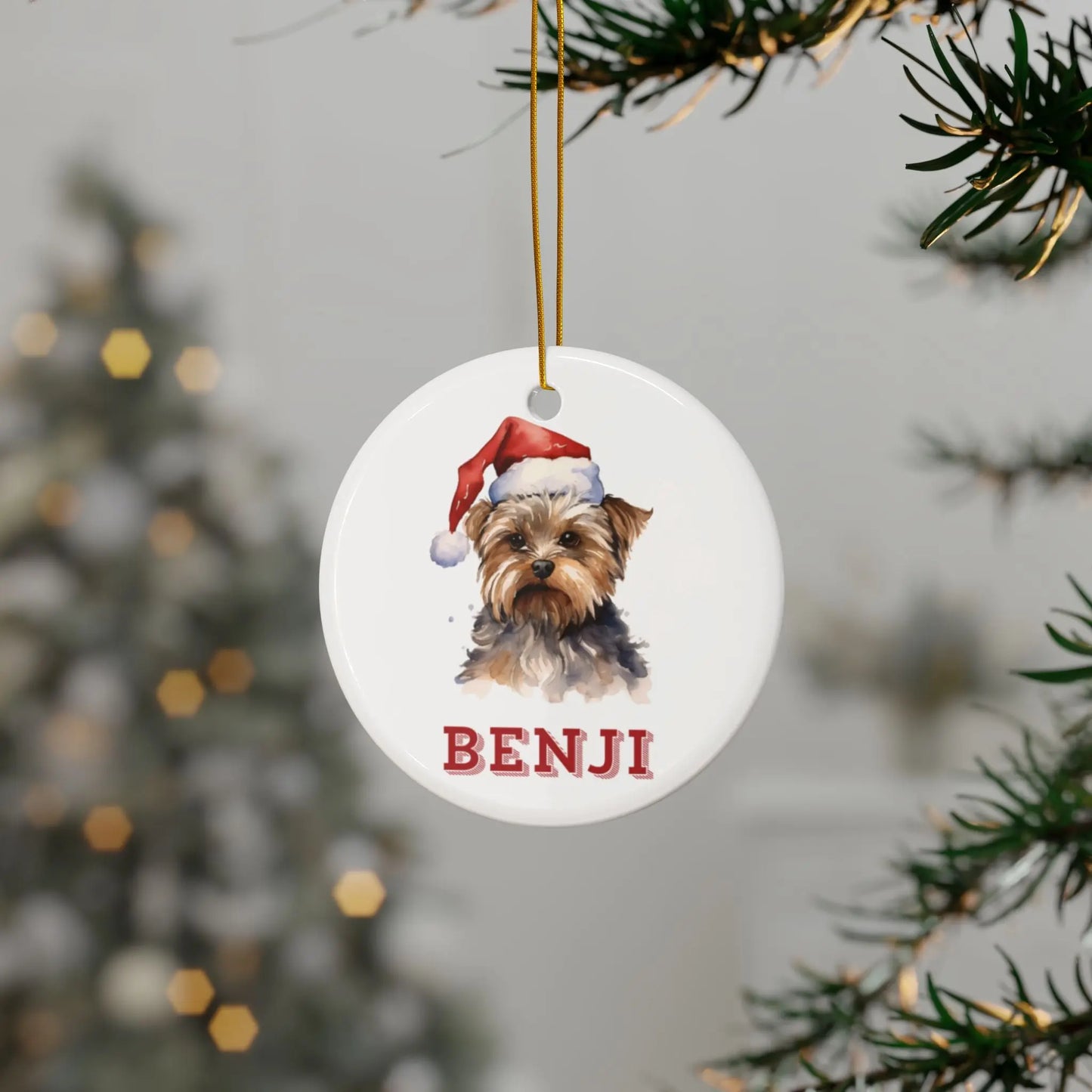 Dog Christmas Bauble, Make your Christmas tree truly unique with our Personalised Yorkshire Terrier Christmas Tree Bauble. This charming bauble can be customised with the name of your favourite furry friend. A perfect addition to any dog lover's holiday decor. Woof woof!