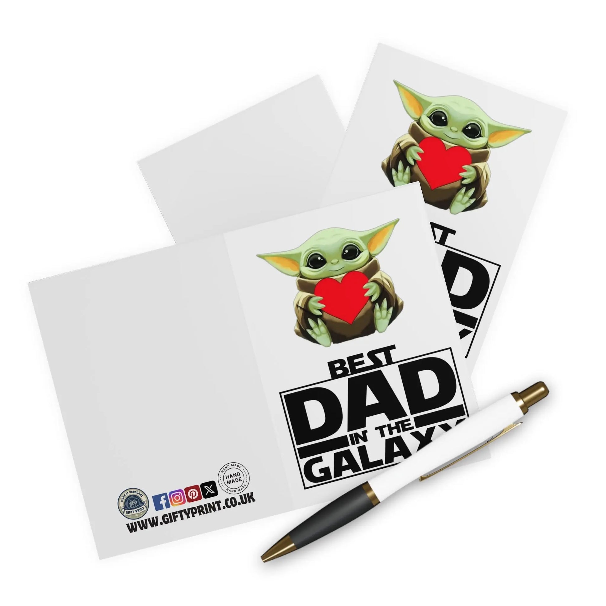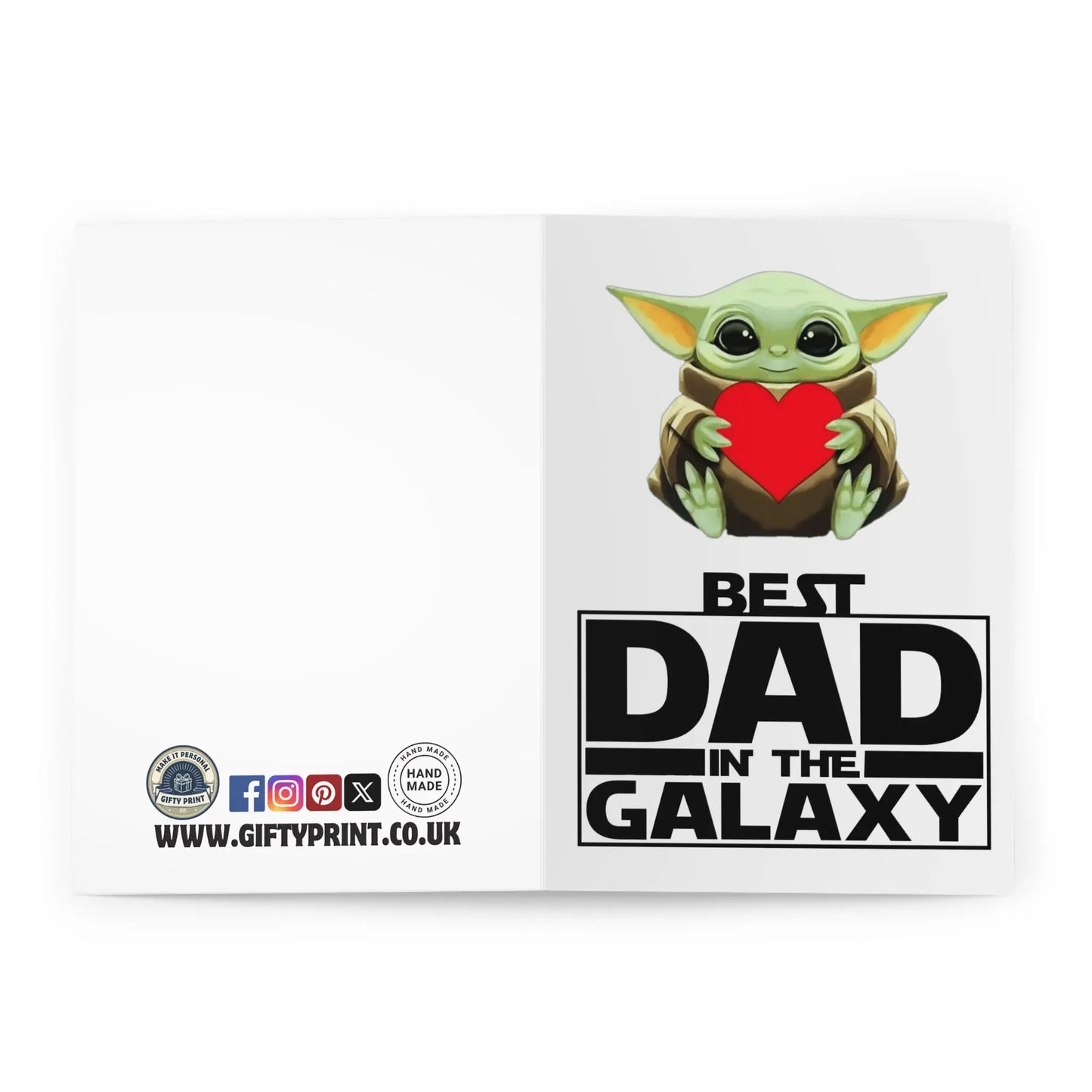 Fathers Day Card, Show dad he's out of this world with our baby Yoda Father's Day card! Features the iconic Baby Yoda with the phrase "Best Dad in the Galaxy" - perfect for the ultimate Star Wars fan and dad. Give the gift of love and laughter this Father's Day.