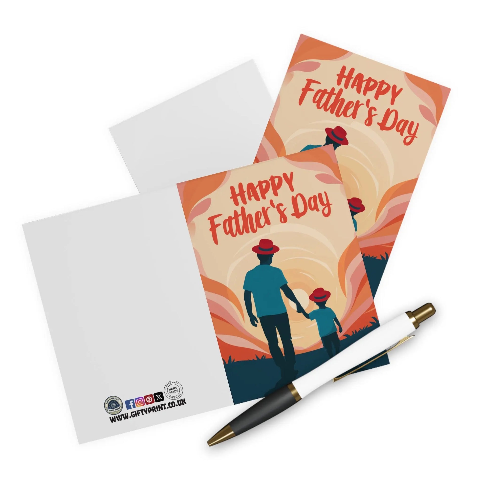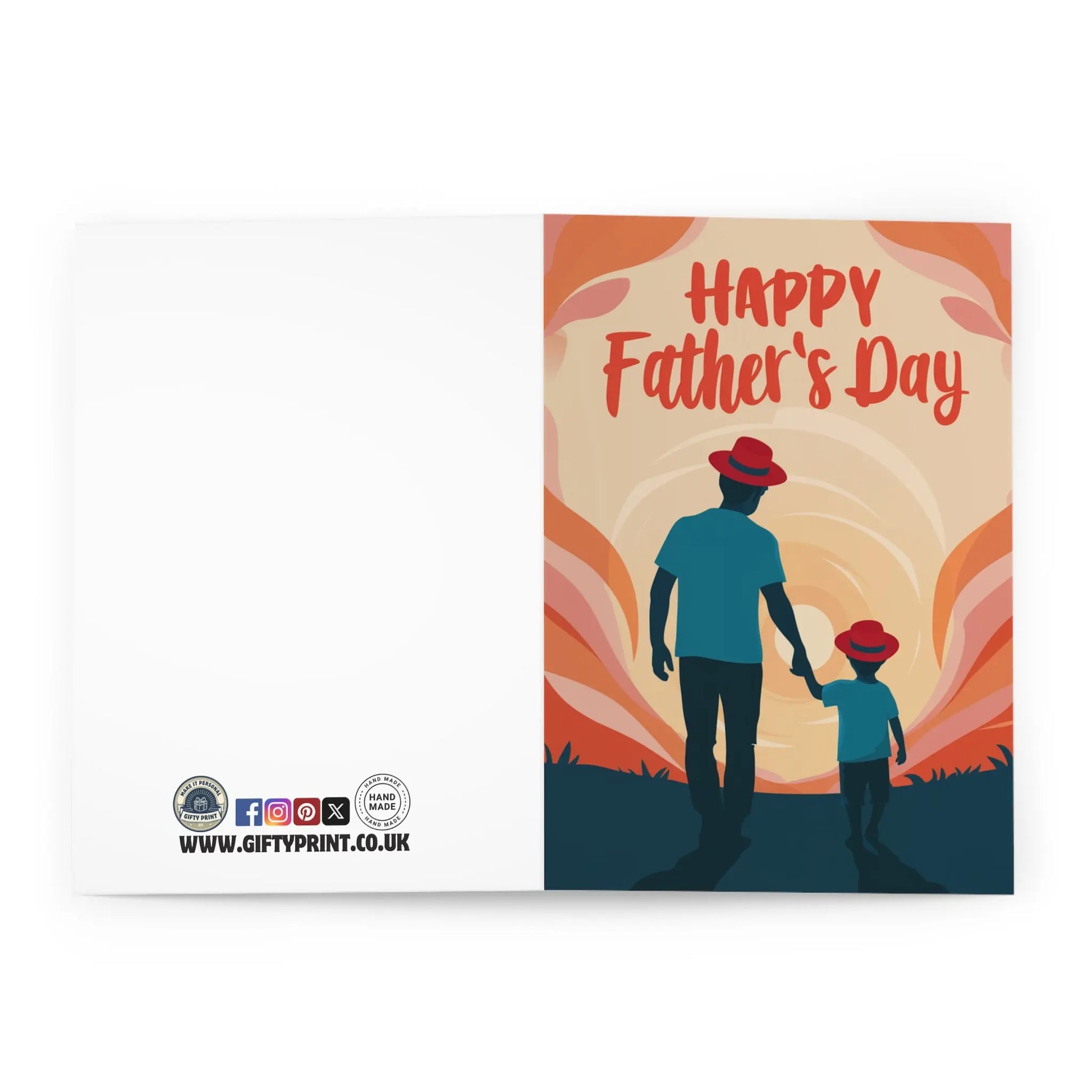 Fathers Day Card, Celebrate Father's Day with this adorable card featuring a father and son holding hands. Show the special bond between father and child and the love that is shared between them. Perfect for any dad, this card will bring a smile to his face and warm his heart. Happy Father's Day!