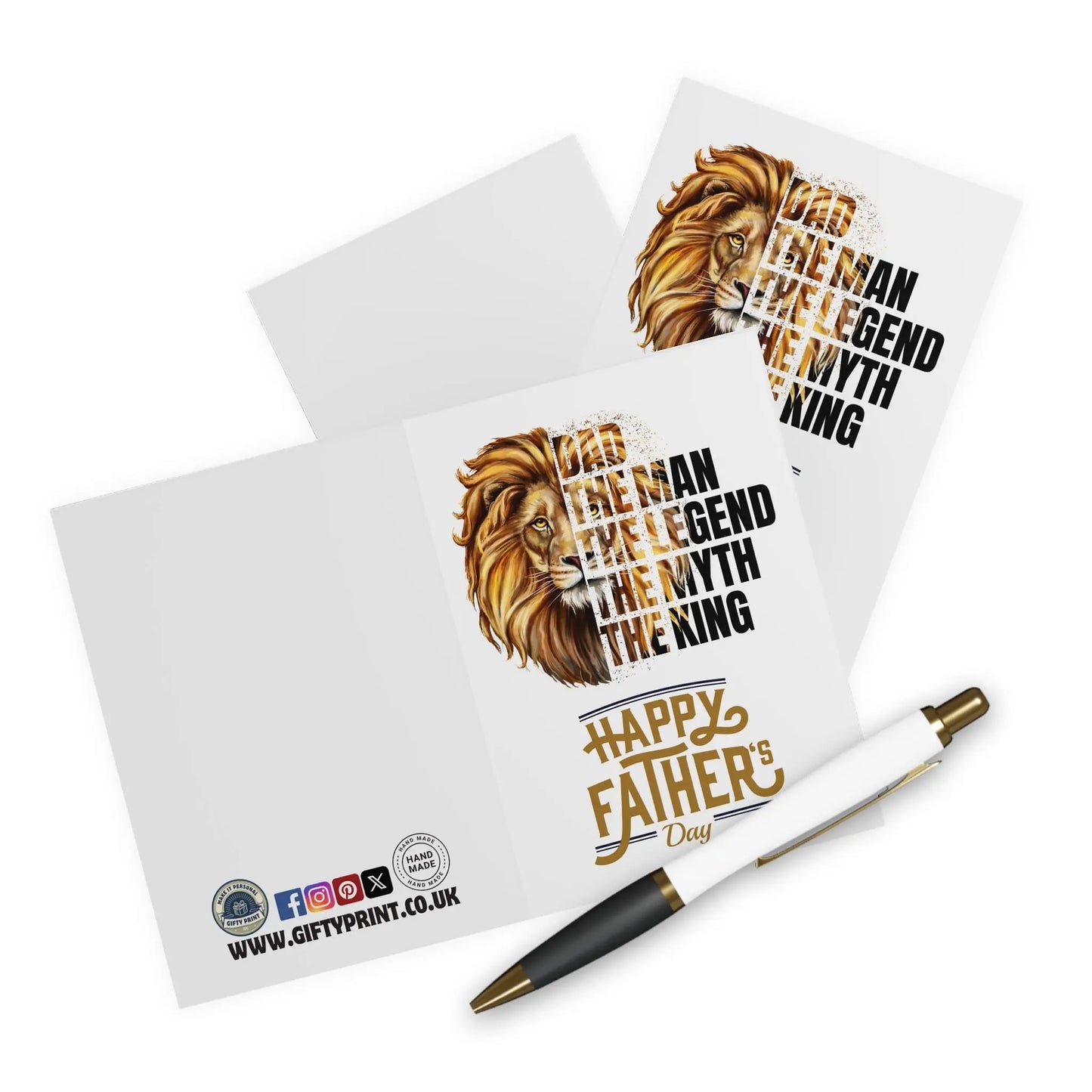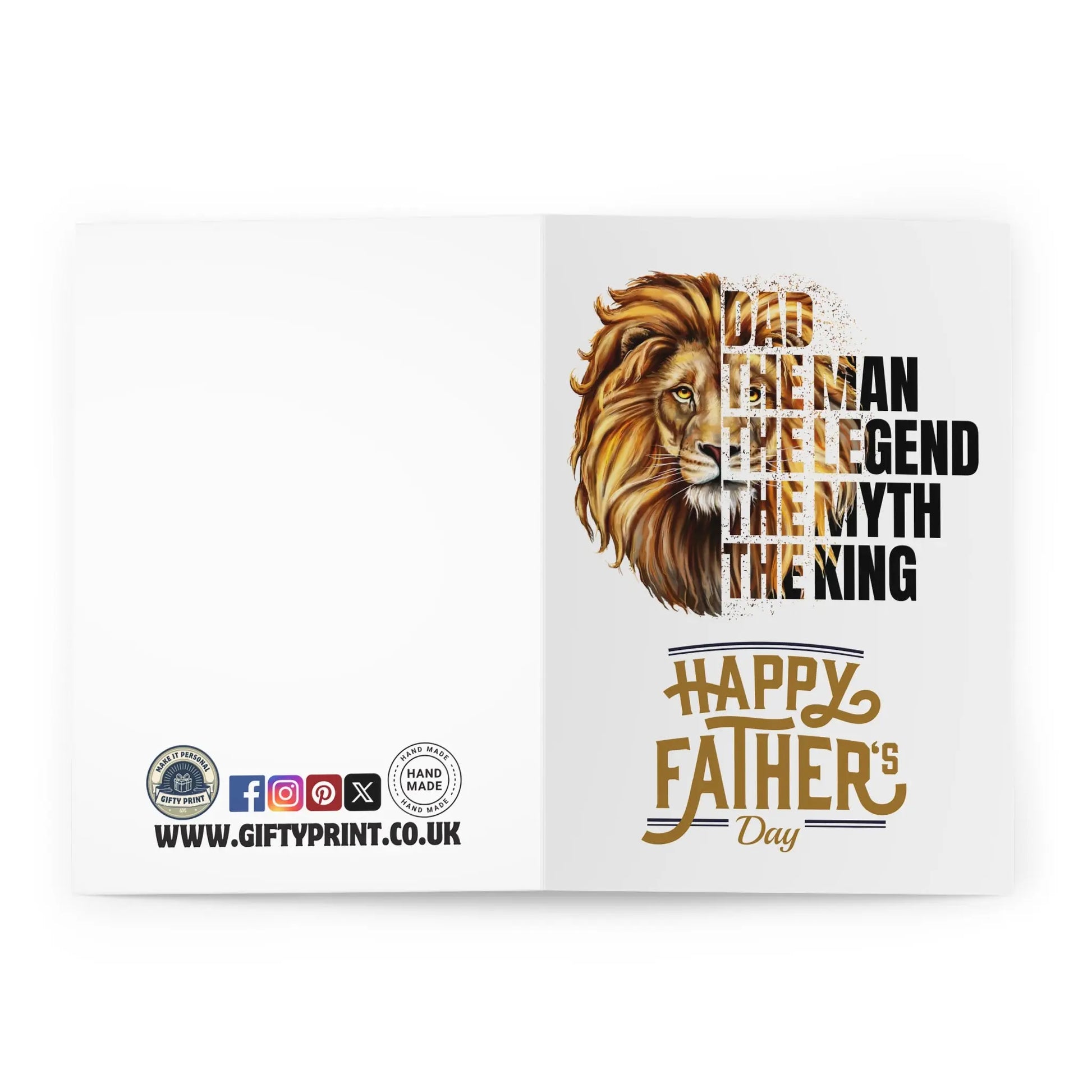 Fathers Day Card, Celebrate Dad with this one-of-a-kind Father's Day card! Featuring a playful twist on the classic phrase "man, myth, legend" with the added title of "king," this card is sure to bring a smile to his face. Remind him that he's a truly legendary Dad and the king of your heart.