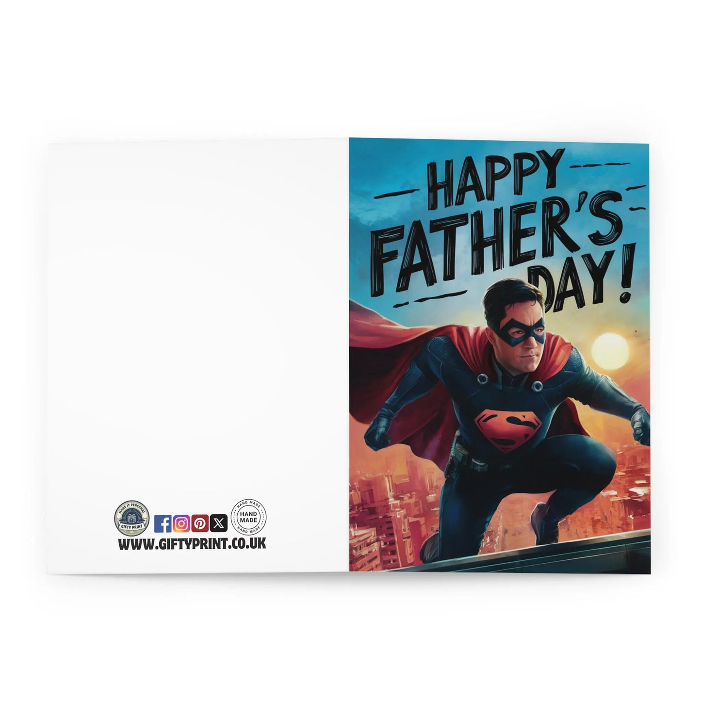 Fathers Day Card, Celebrate your dad's superpowers with this playful Fathers Day card. Featuring a masked hero and the message "Happy Fathers Day," this card is the perfect way to show your appreciation for his strength and love. No cape required.