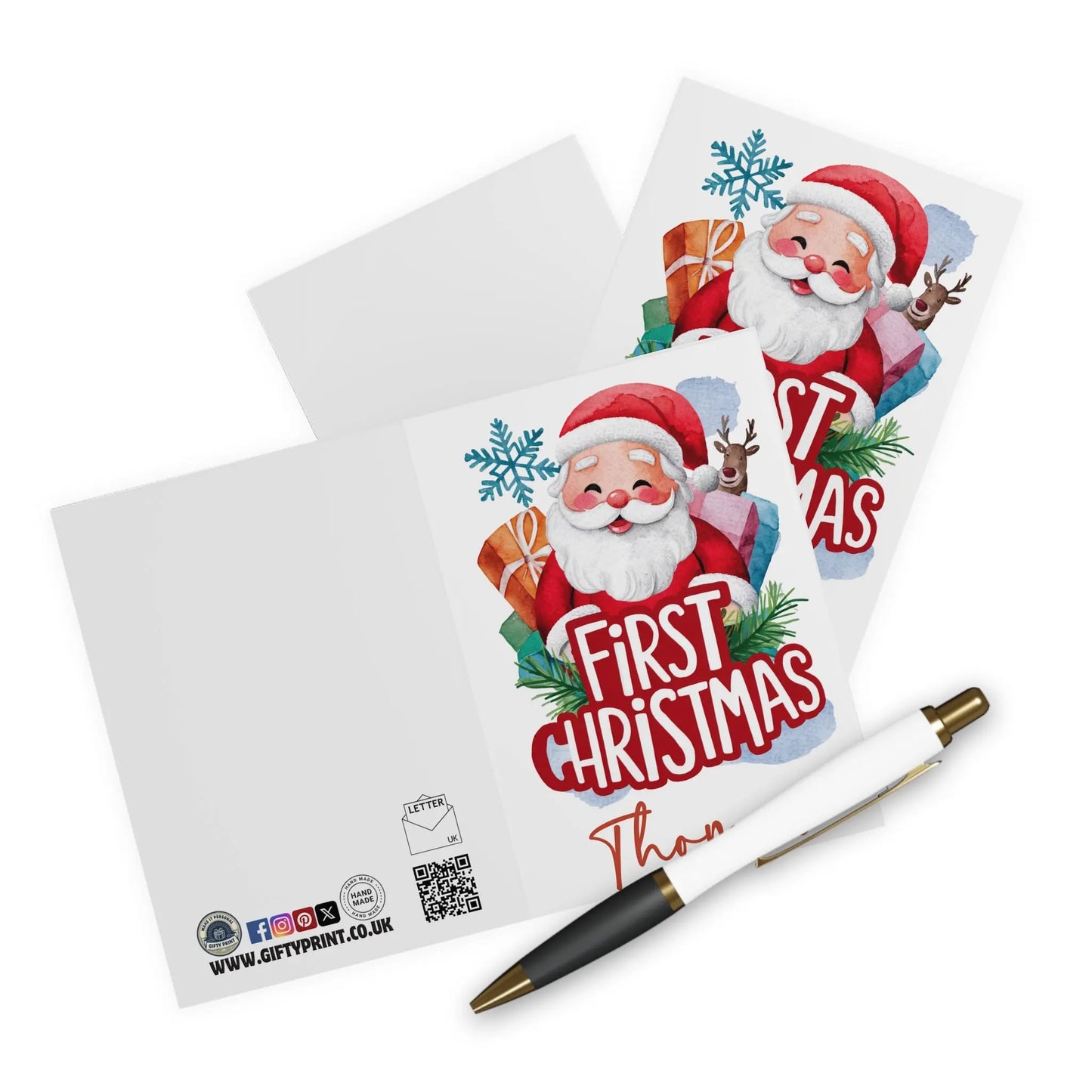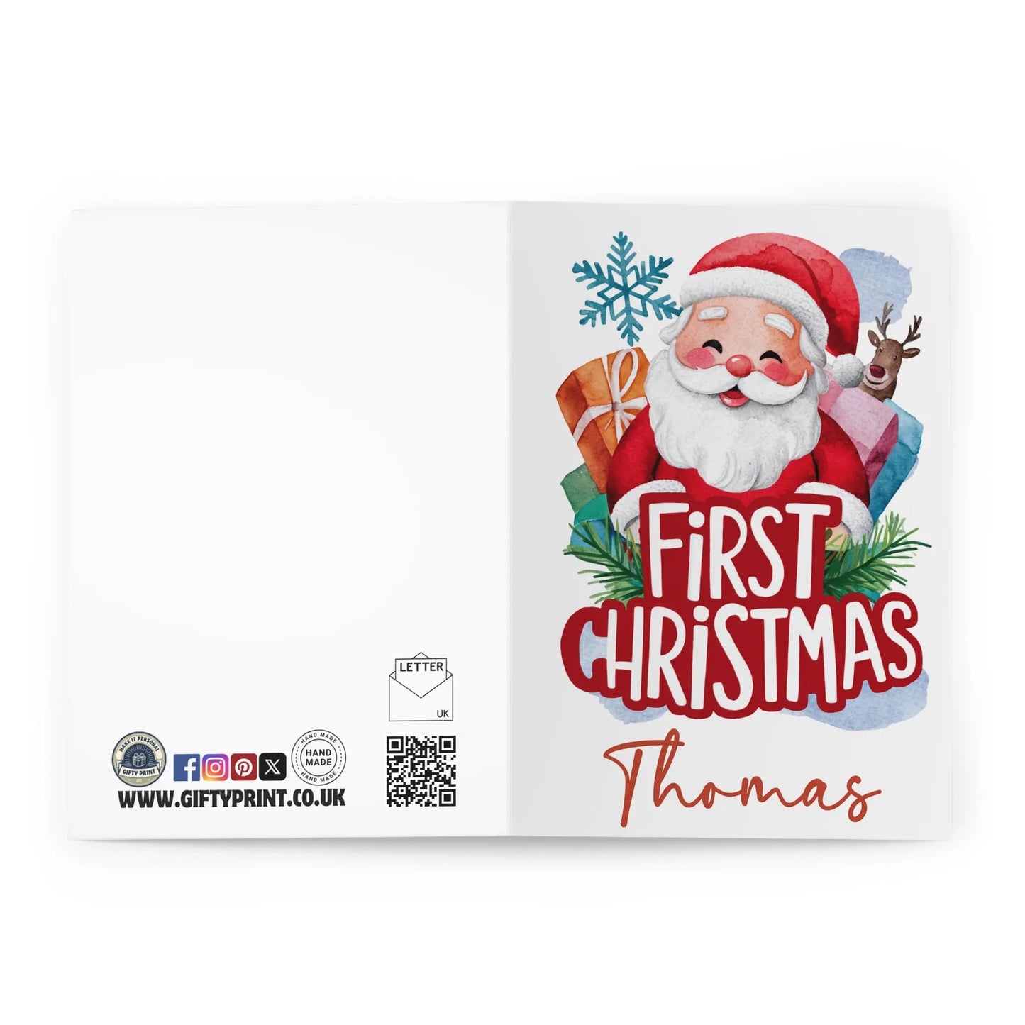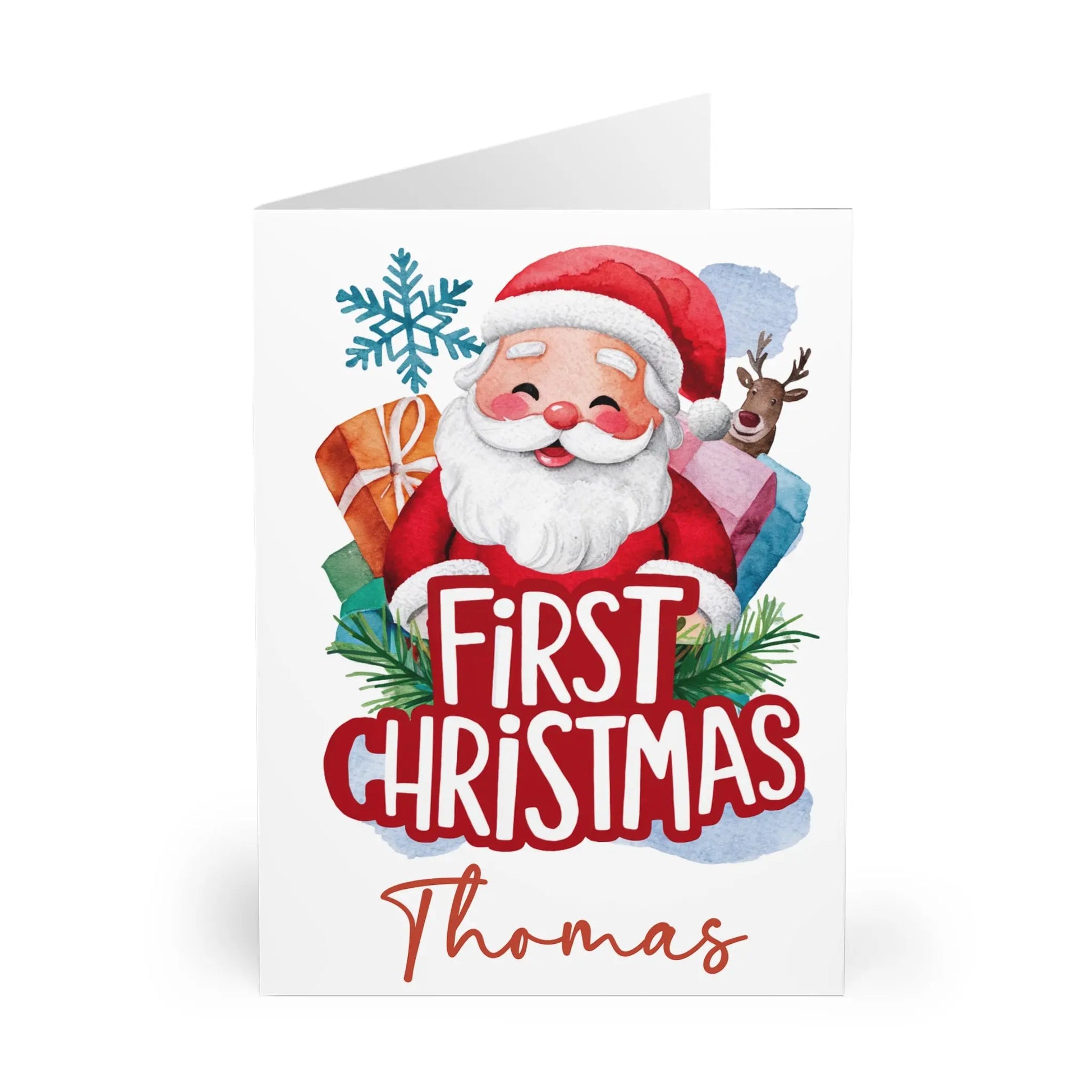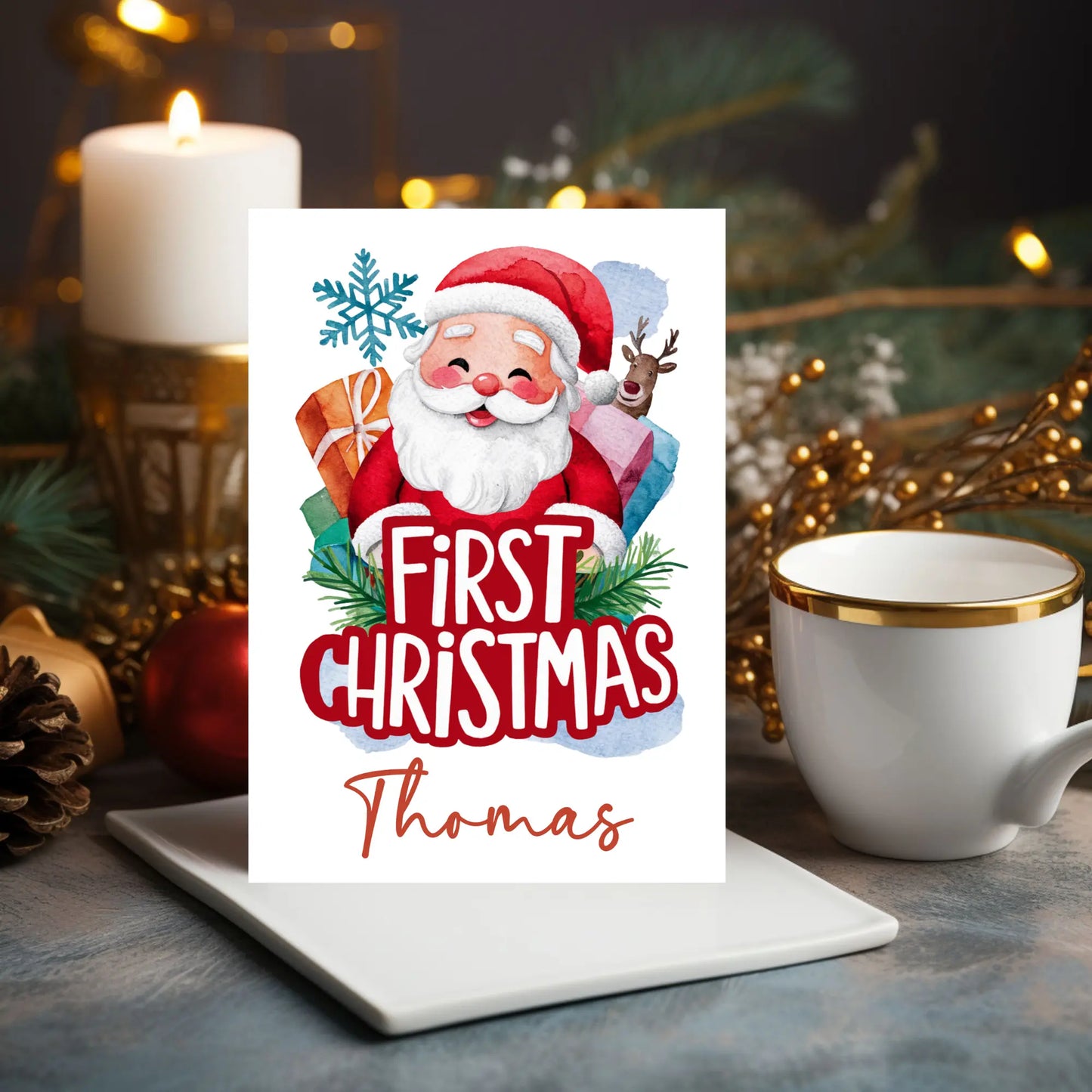 First Christmas Card, Celebrate baby's first Christmas with this charming Santa Claus card, personalised just for them! Make it a keepsake. Share holiday joy with loved ones and spread smiles this season!