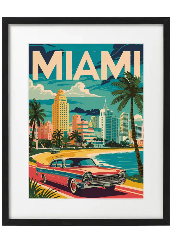 Framed Travel Prints, Transport yourself to the luxurious and vibrant streets of Miami with our vintage travel poster print or framed option. Immerse yourself in the rich history and culture of this iconic city, all from the comfort of your own home. Choose from a print or framed version to elevate your space with a touch of elegance and exclusivity.