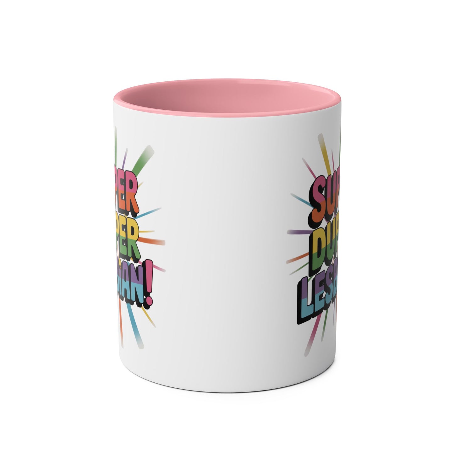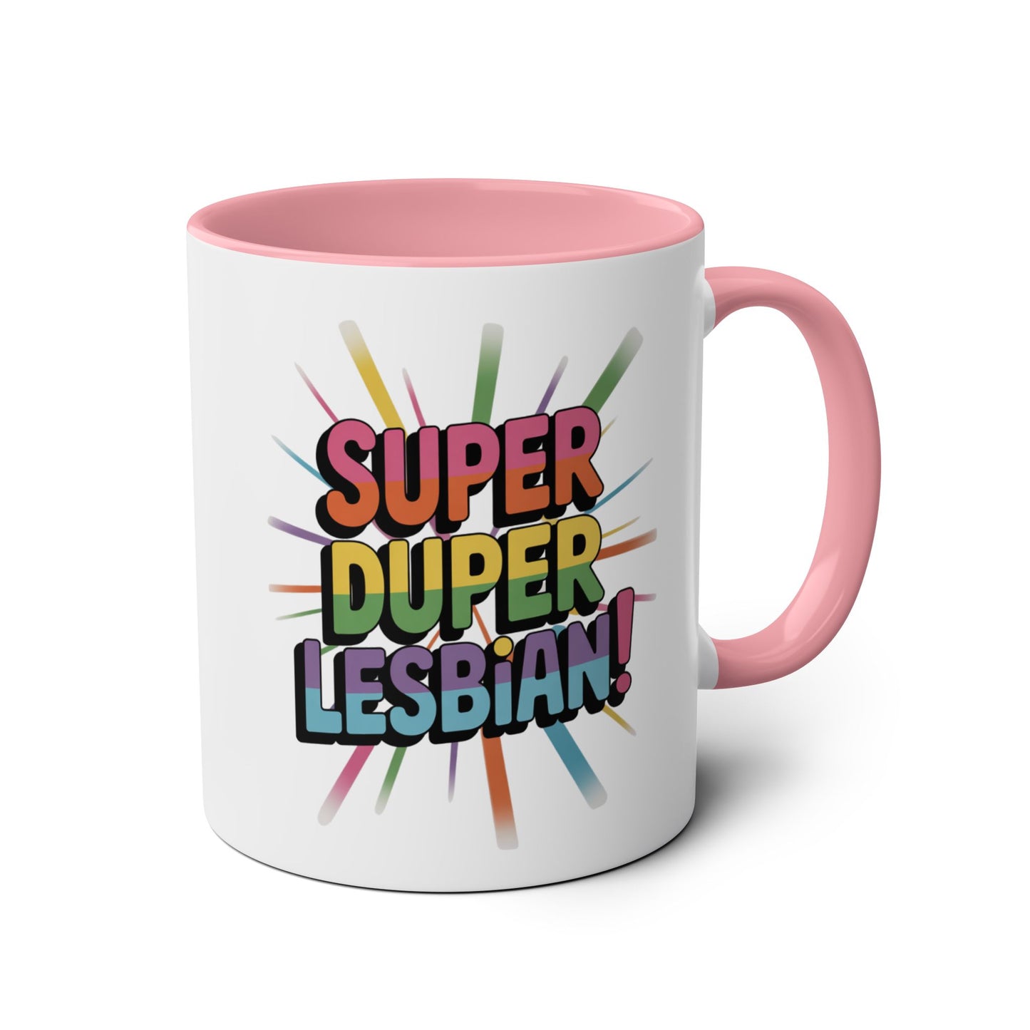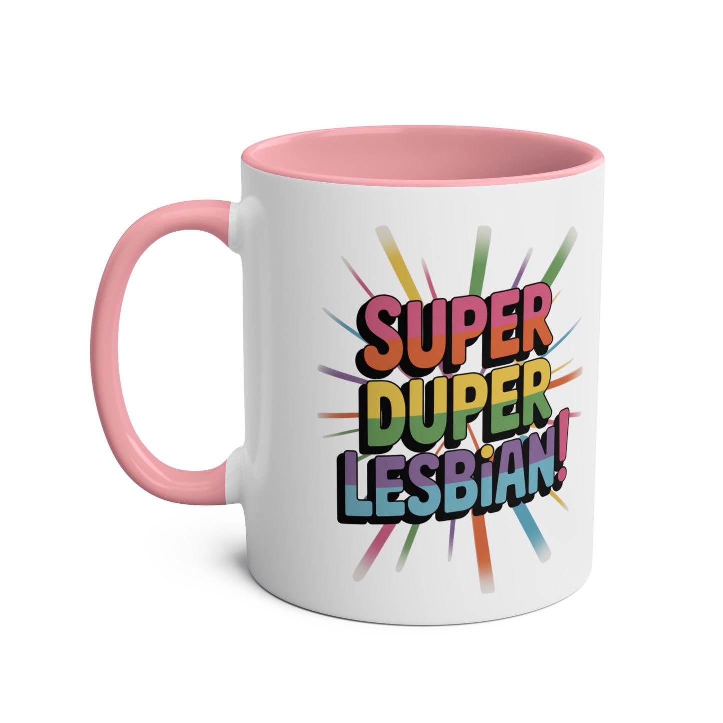 Celebrate your fabulous identity with this playful "Super Duper Lesbian" mug! Perfect for morning coffee, afternoon tea, or anytime you want to sip with pride. This fun gay-themed mug makes a brilliant gift for yourself or your favourite lesbian friend. Show off your personality with every drink!