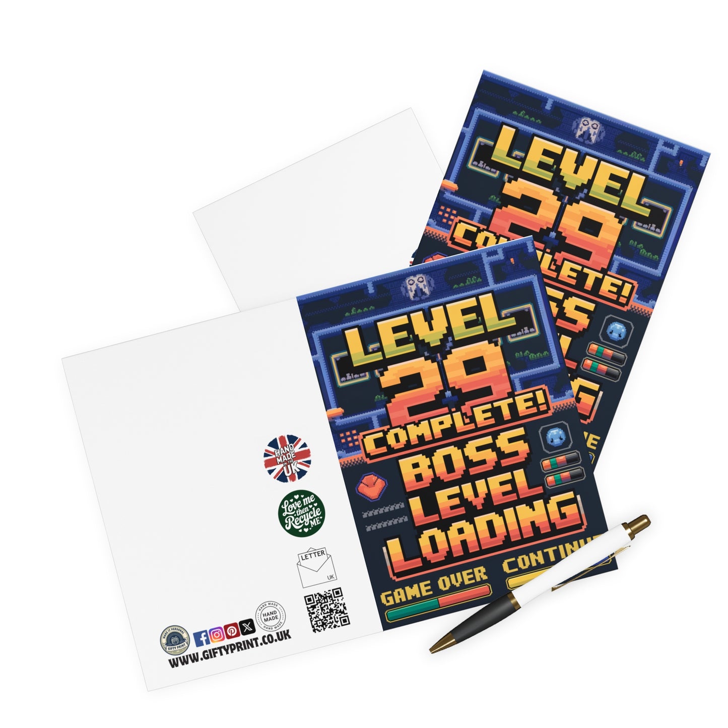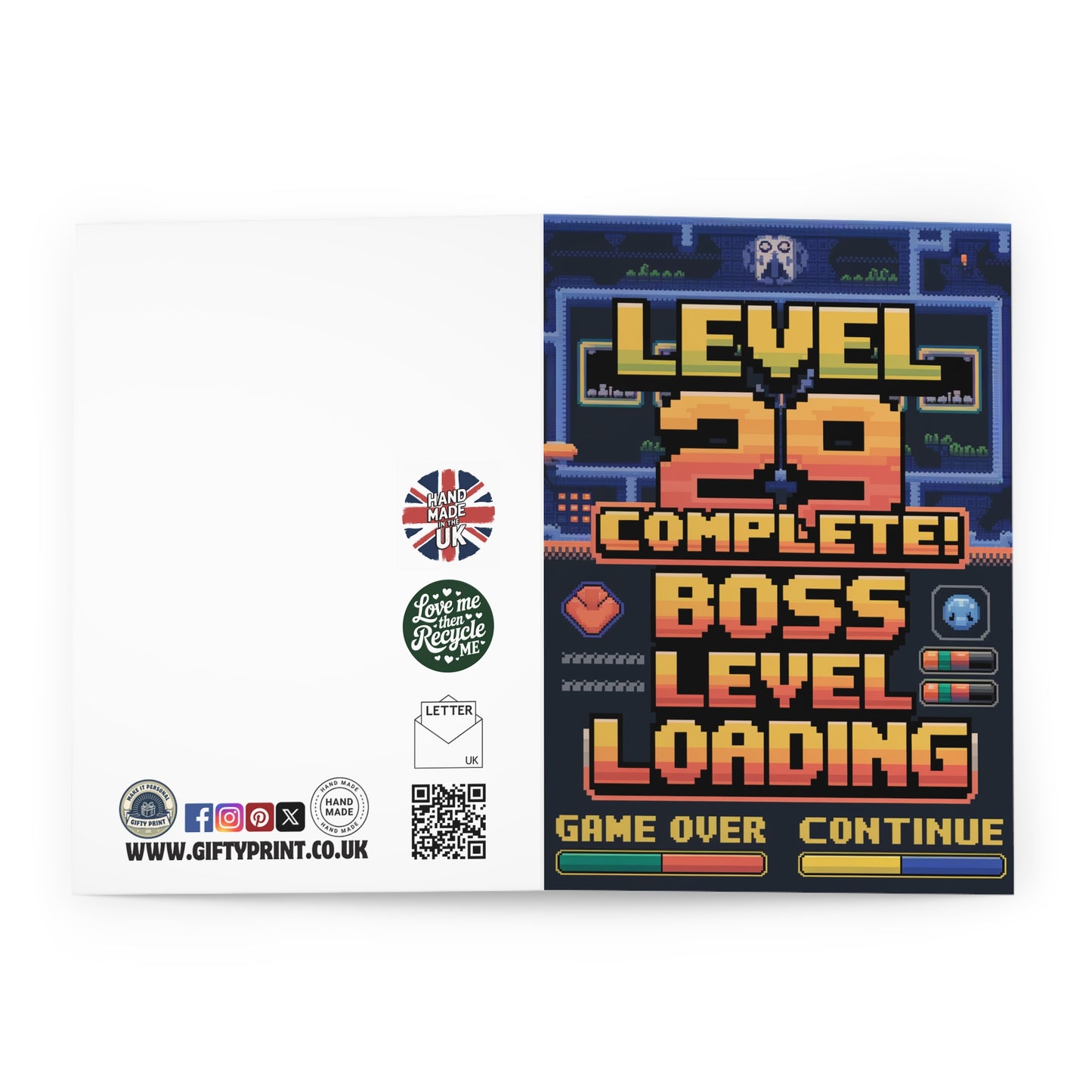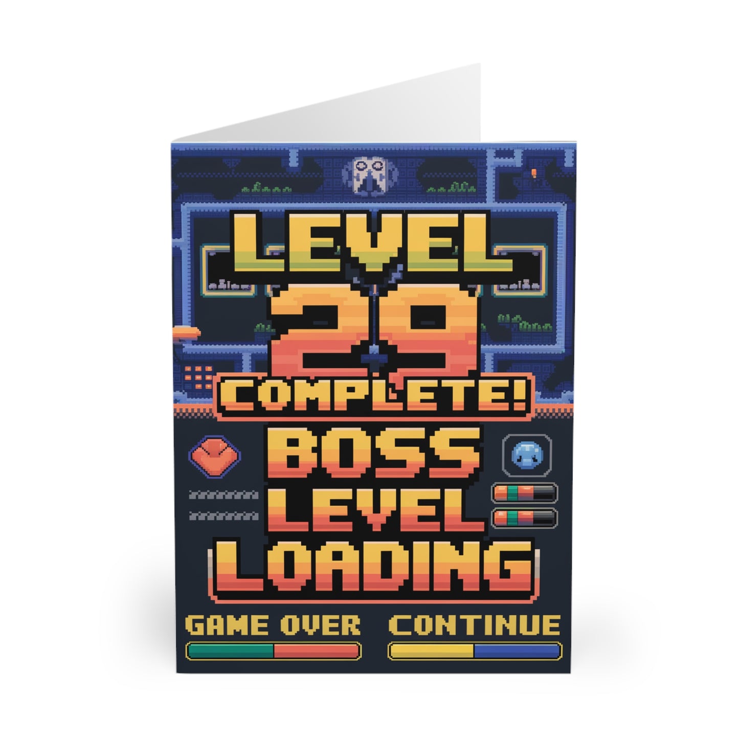 Funny 30th Birthday Card, Celebrate their 30th birthday with this humorous card that reads "Level 29 Complete, Boss Level Loading." Perfect for gamers or anyone looking to level up in life. Let them know they're halfway to the next level with this unique card.