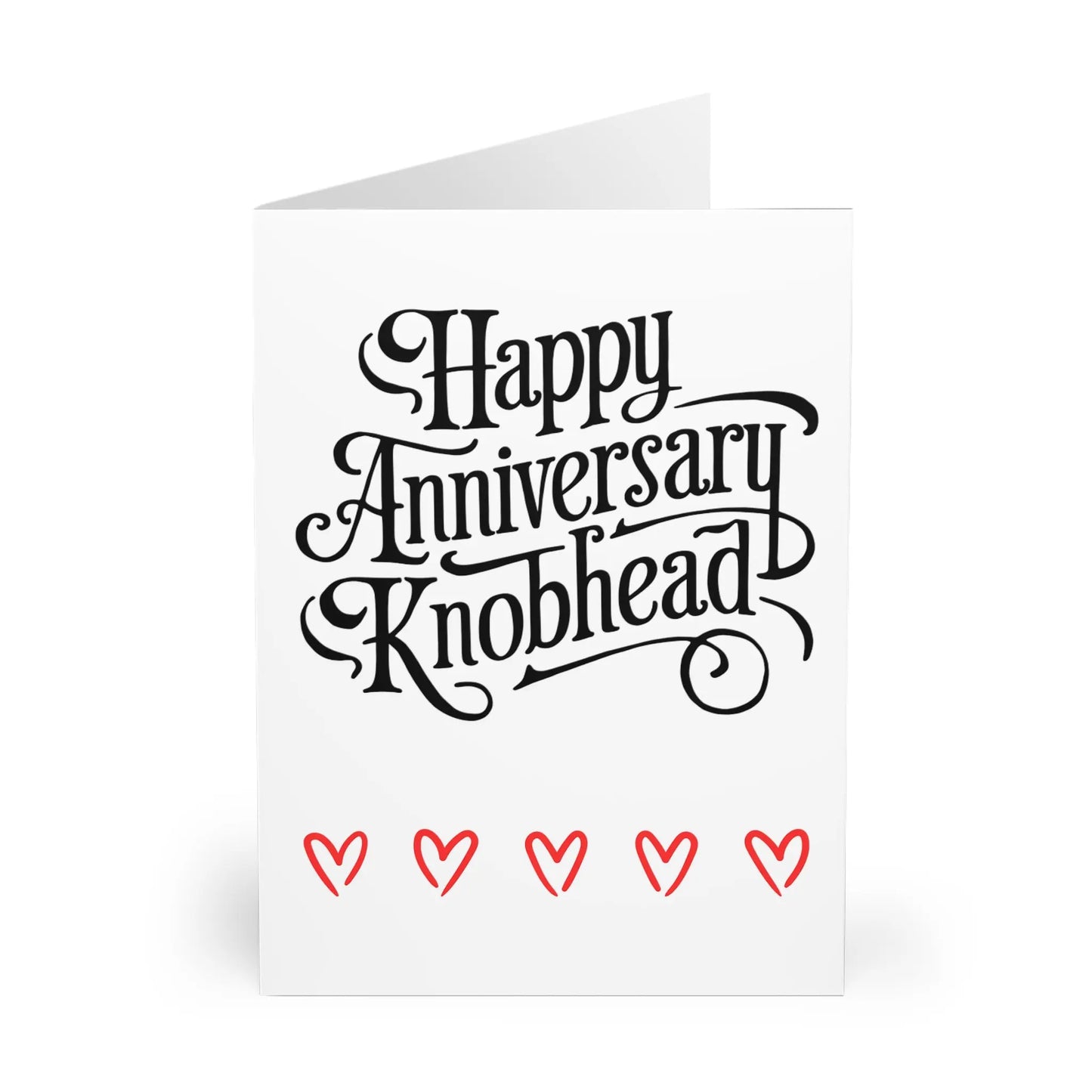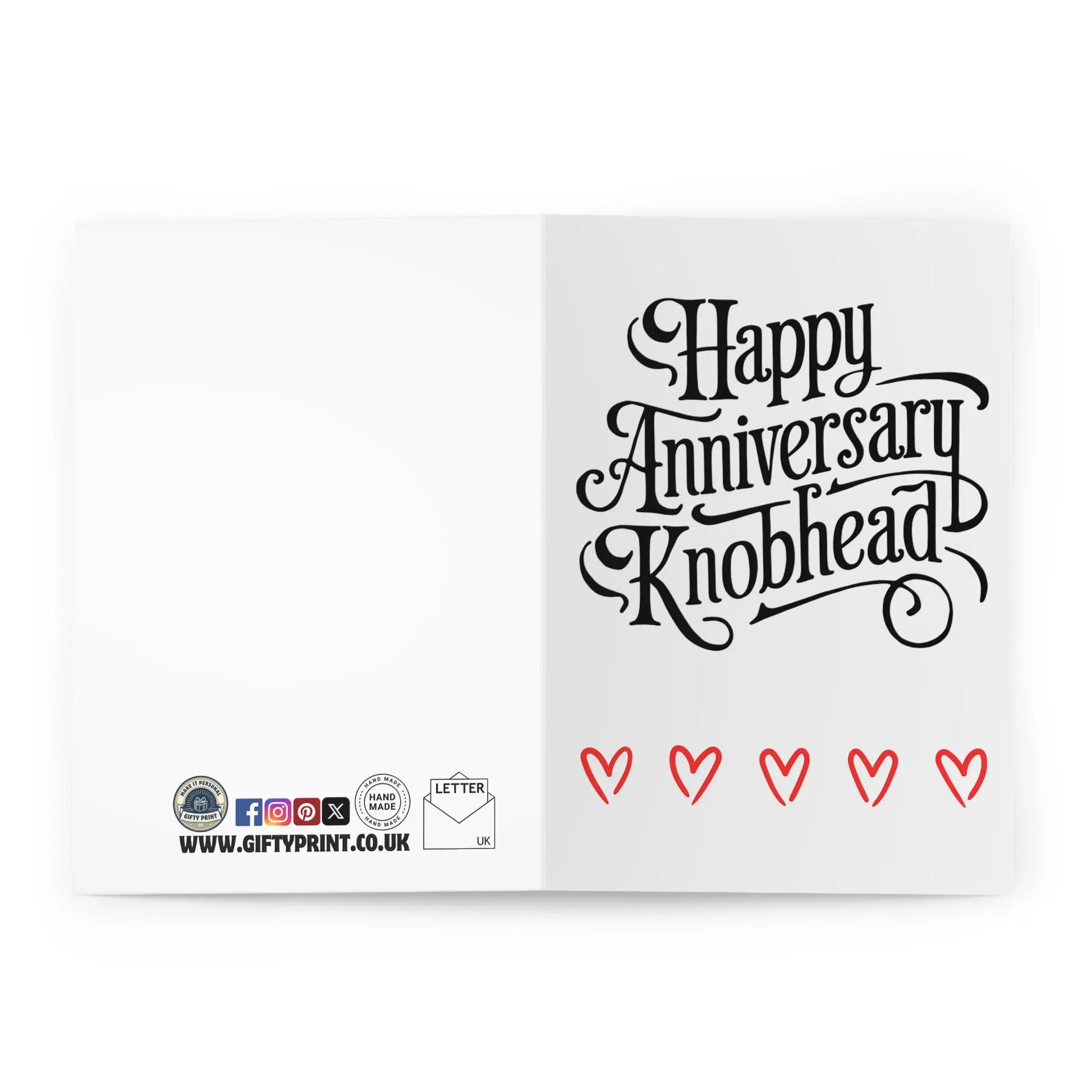 Funny Anniversary Card, Looking for a unique way to wish your beloved knobhead a happy anniversary? Look no further than this witty anniversary card! Perfect for couples who don't take themselves too seriously, this card features a playful tone and humorous word play to express your love. No cliches or mushy sentiments here - just a fun and quirky way to celebrate your special day!
