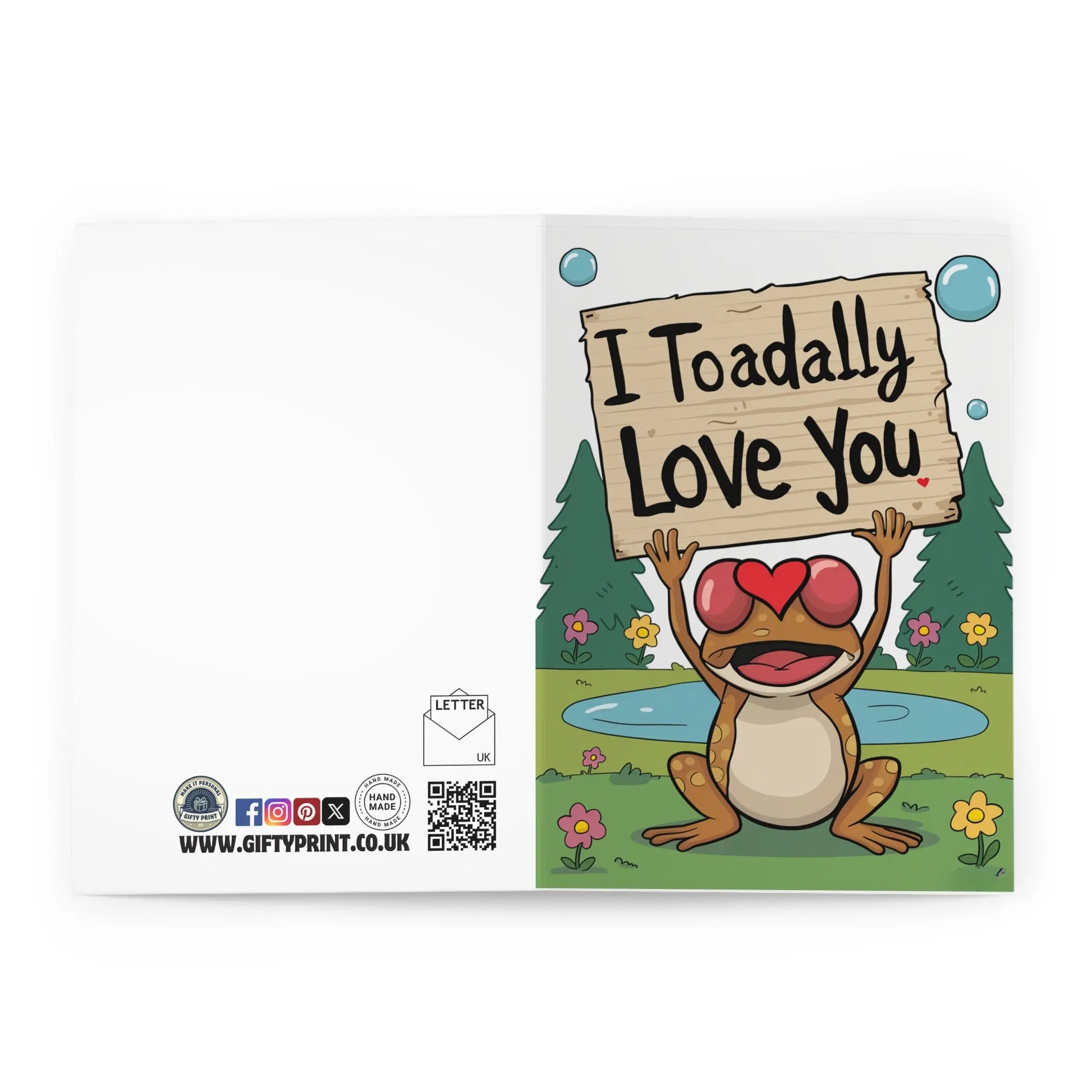 Funny Anniversary Card, Express your love with our I Toadally Love You Toad Anniversary Card! Show your significant other how much they mean to you with this quirky and playful card. Perfect for celebrating your toad-ally special relationship.